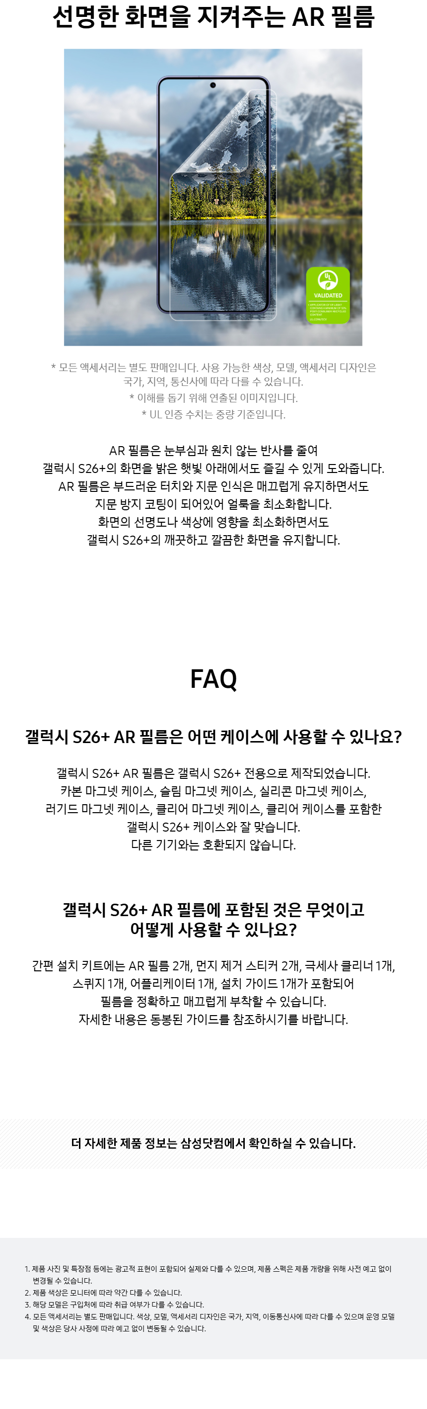 삼성 갤럭시 S26 플러스 AR 스크린 프로텍터 액정보호필름 지문방지 저반사