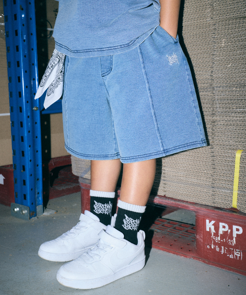 KIDS TAG JERSEY DENIM SHORTS - BLUE