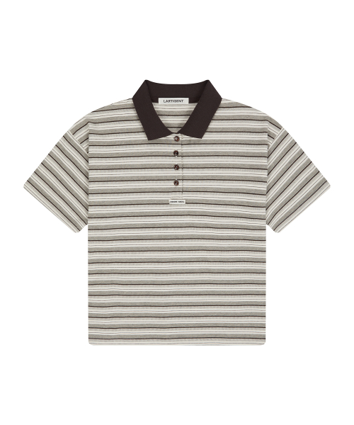 스트라이프 배색이 있는 정핏 카라 티셔츠