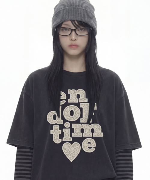 [UNISEX]END OF TIME 레이스 반팔티_4color