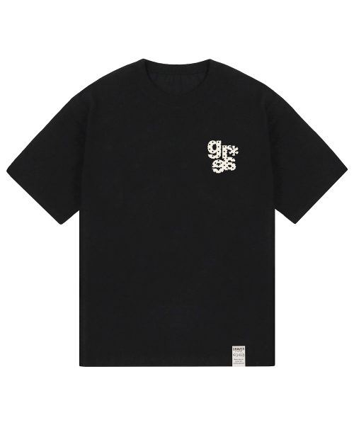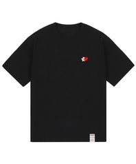 [UNISEX]플라워 하트 하프스마일 반팔티_블랙