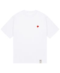 [UNISEX]플라워 하트 하프스마일 반팔티_화이트