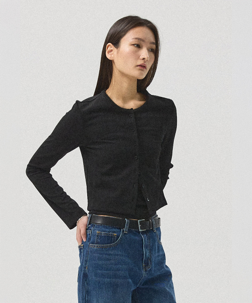 Selve Pleated Lace Cropped Cardigan_BLACK