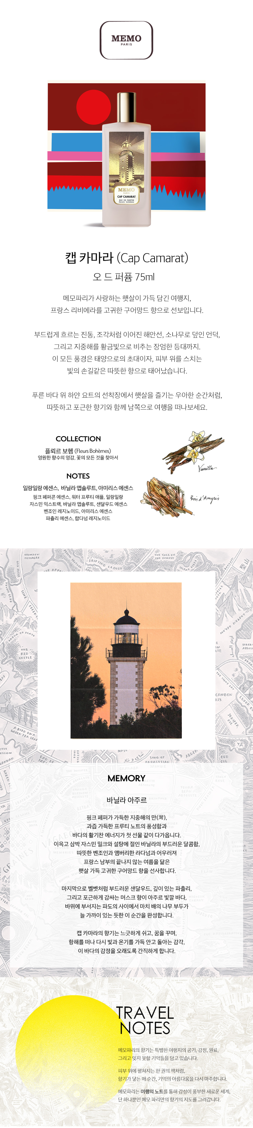 메모파리(MEMO PARIS)는 ‘기억(Memory)’에서 비롯되어 '향기로 이동 없이 여행을 떠날 수 있다'는 철학으로 탄생한 프렌치 프래그런스 하우스입니다. 후각적 기억이 깃든 메모파리만의 섬세하면서도 우아한 향기로 꿈꿔왔던 행선지로 당신만의 여행을 떠나보세요.