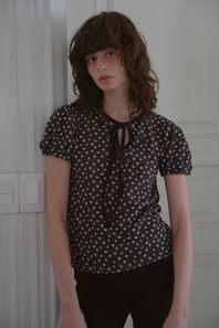 VINTAGE FLOWER RIBBON T-SHIRT_BLACK