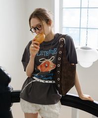 RIBBON CROISSANT T-SHIRTS_CHARCOAL