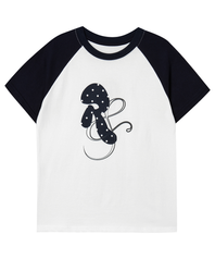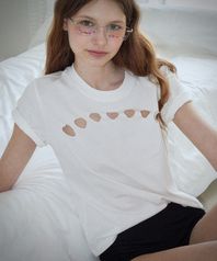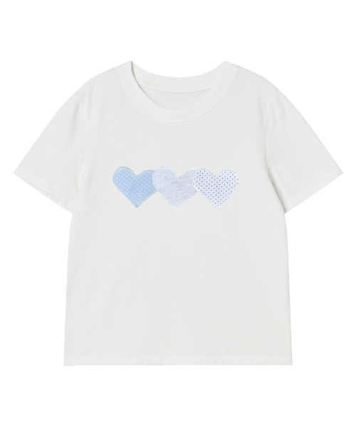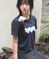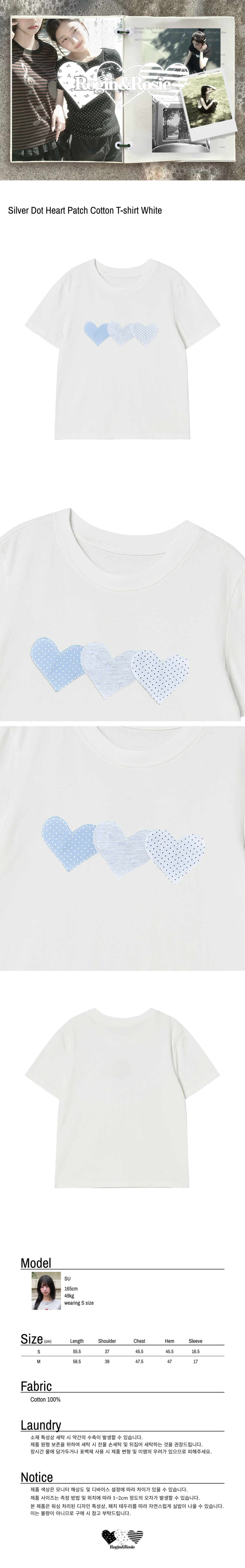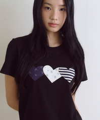 Silver Dot Heart Patch Cotton T-shirt Navy
