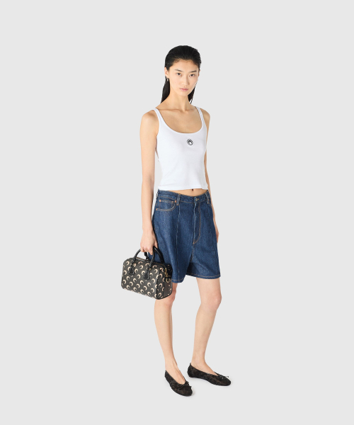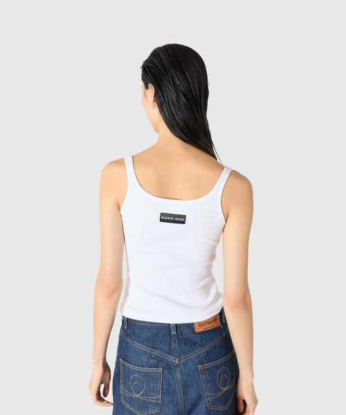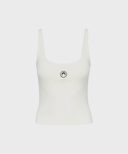 (W) 문 로고 리브드 저지 크롭 탱크탑 화이트 MOON LOGO RIBBED JERSEY CROP TANK TOP WH10 WHITE