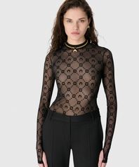 (W) 무노그램 메쉬 플록 롱슬리브 하이넥 탑 블랙 MOONOGRAM MESH FLOCK LS HIGHNECK TOP BK99 BLACK