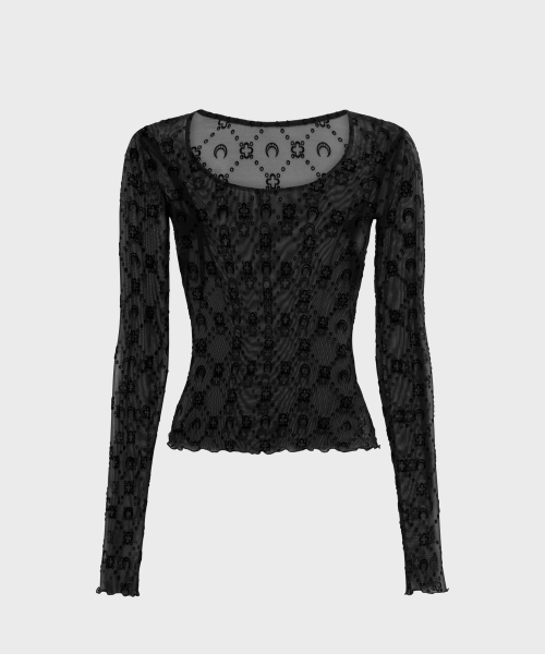 (W) 무노그램 메쉬 플록 롱슬리브 라운드넥 탑 블랙 MOONOGRAM MESH FLOCK LS ROUNDNECK TOP BK99 BLACK