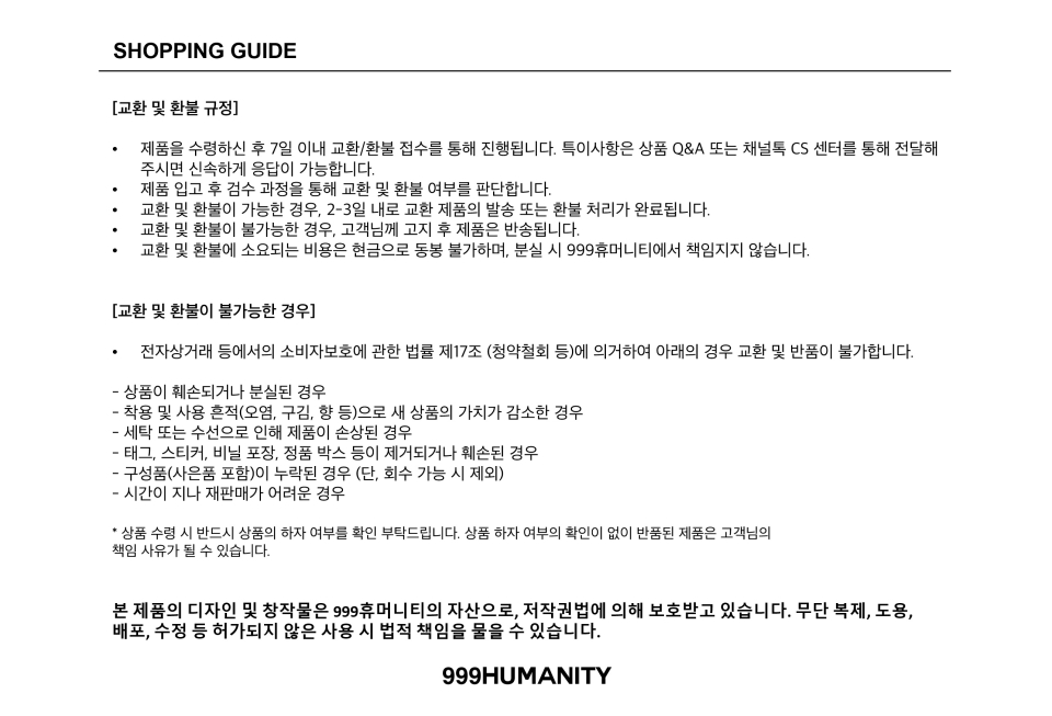 999휴머니티(999HUMANITY)는 불완전함과 완전함의 경계에서 끊임없이 순환하다가 어떤 누군가와의 접점을 통해 새로운 것을 받아들이는 매개체입니다. 999는 접점의 무수한 연결을 의미하며, 다양성을 바탕으로 우리가 경험해온 의복의 선순환을 지향하며 만들어갑니다.