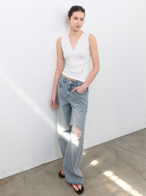 자연스러운 워싱과 빈티지 디스트로이드 디테일이 돋보이는
