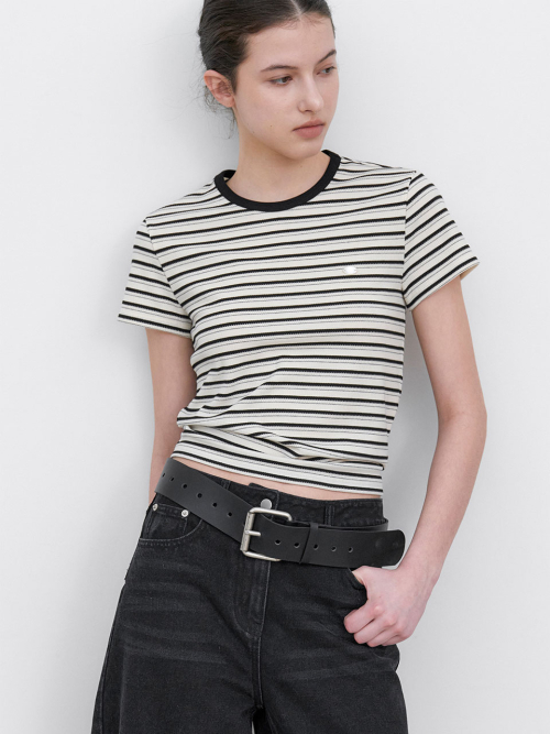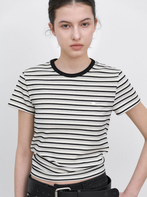 스트라이프 패턴과 적당한 크롭 기장으로 다양한 하의와 매치하기 좋으며,