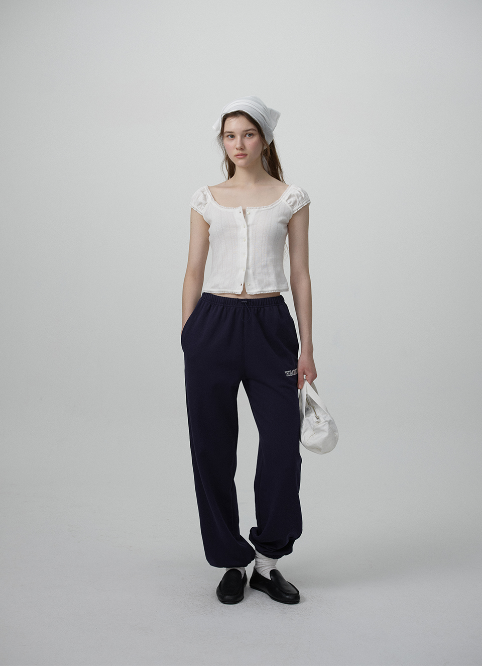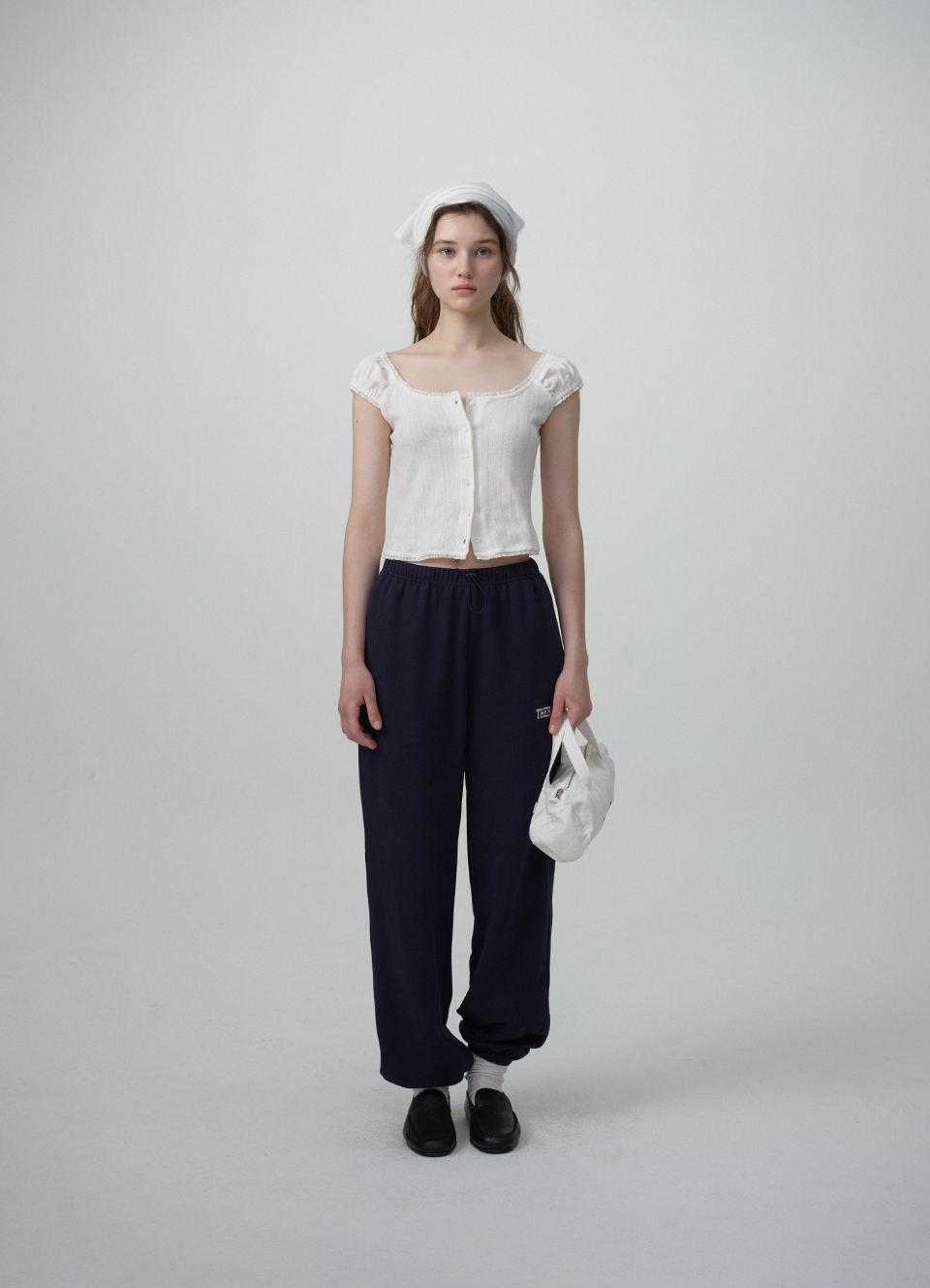 클래식한 네이비 컬러와 탄탄하고 밀도 높은 트윌 소재의 코튼 패브릭