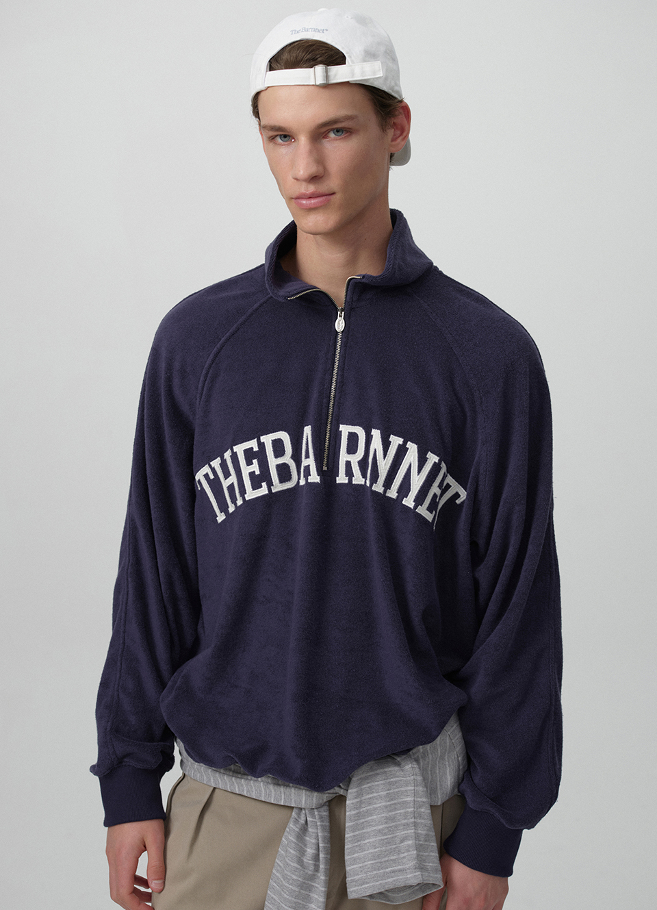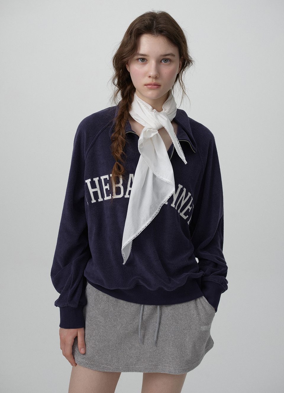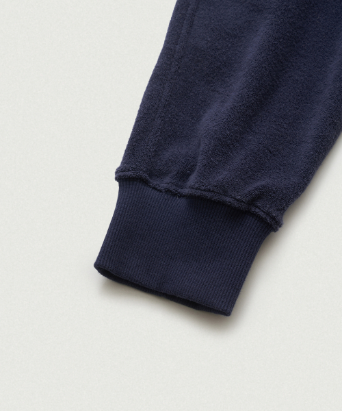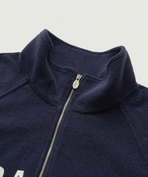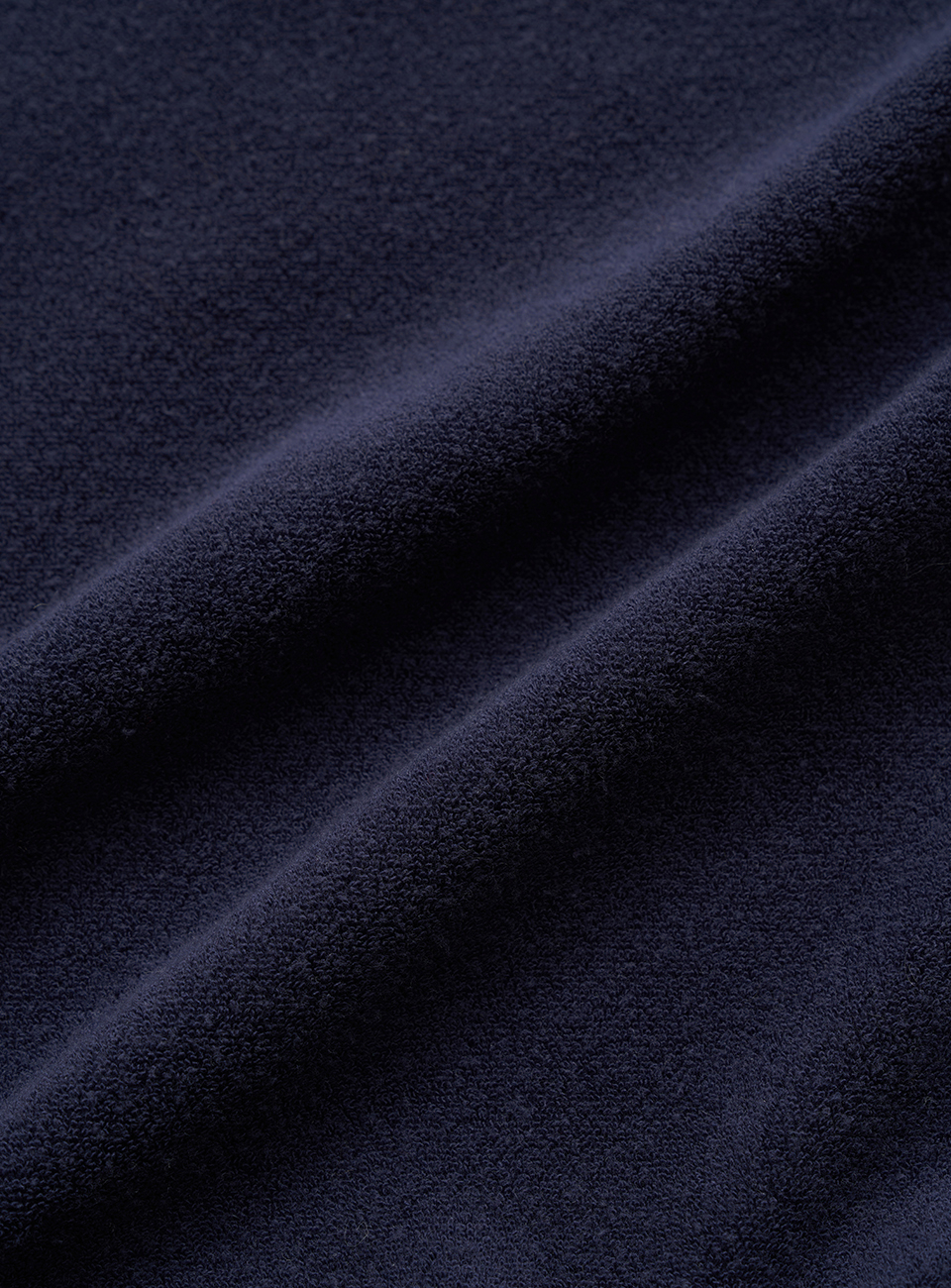 클래식한 네이비 컬러와 부드러운 터치감의 테리 소재 패브릭