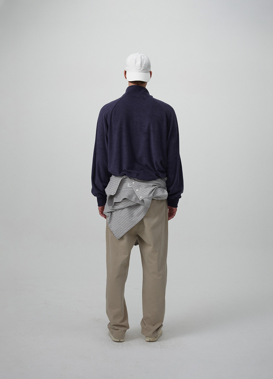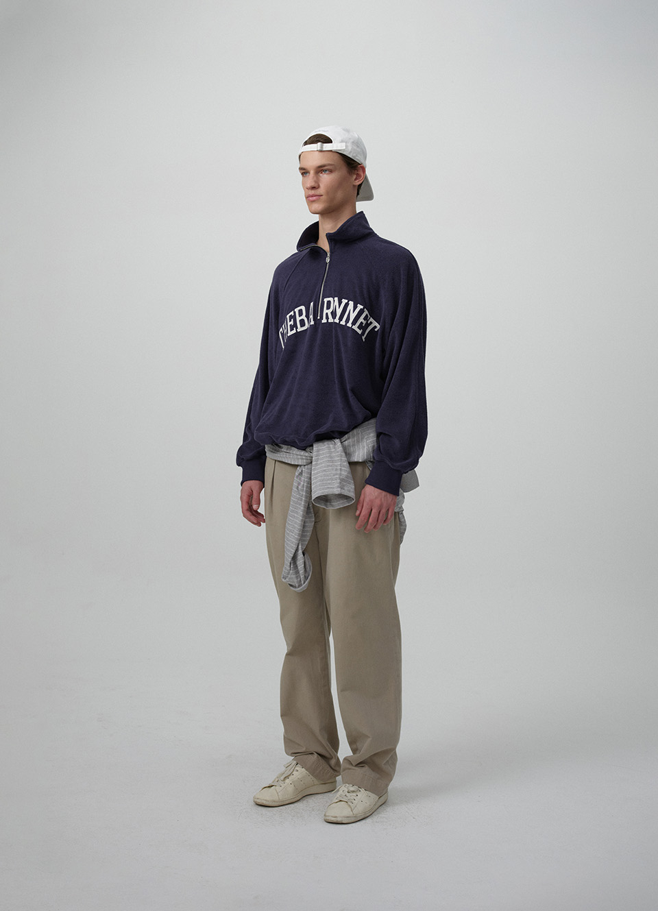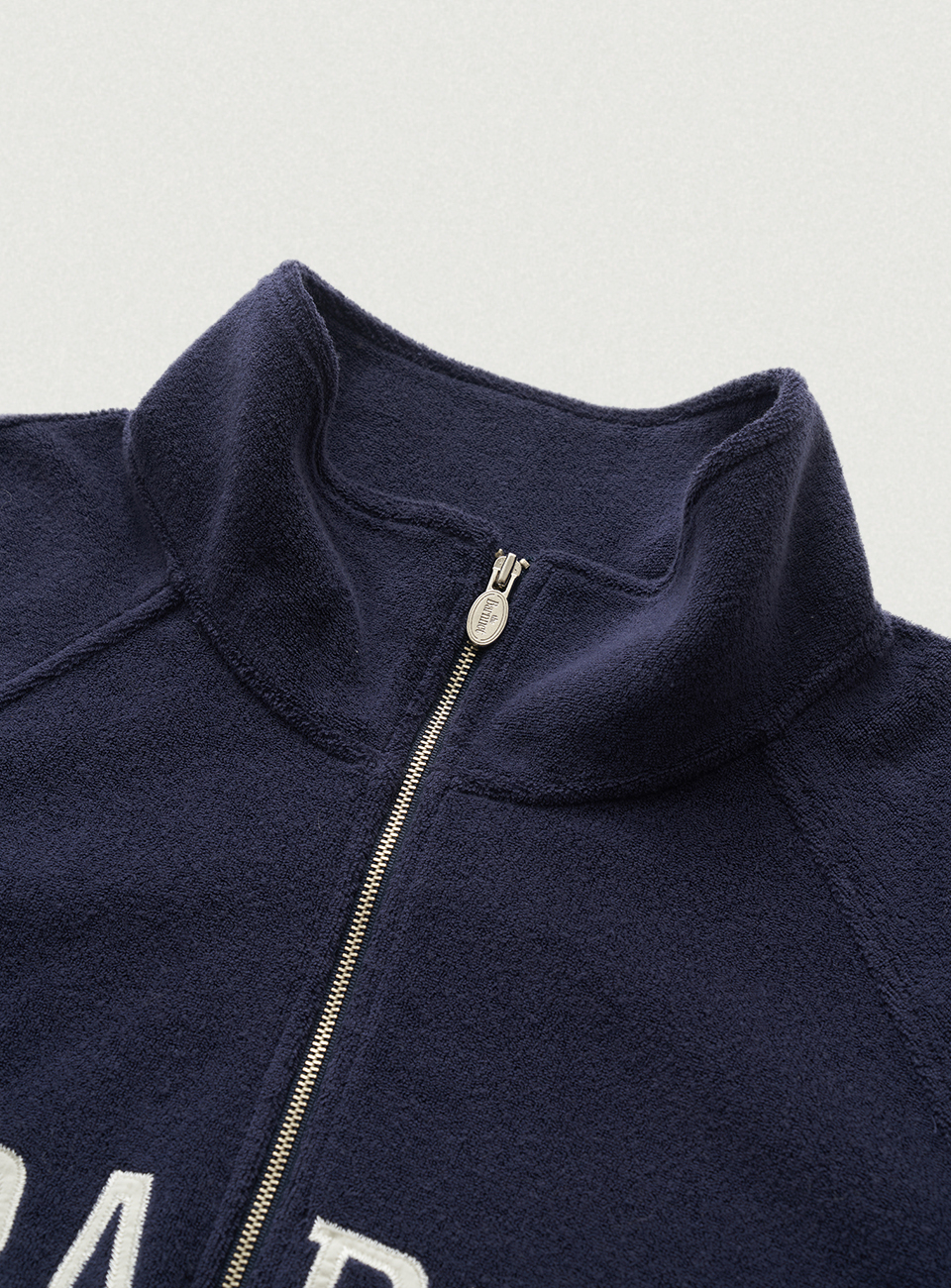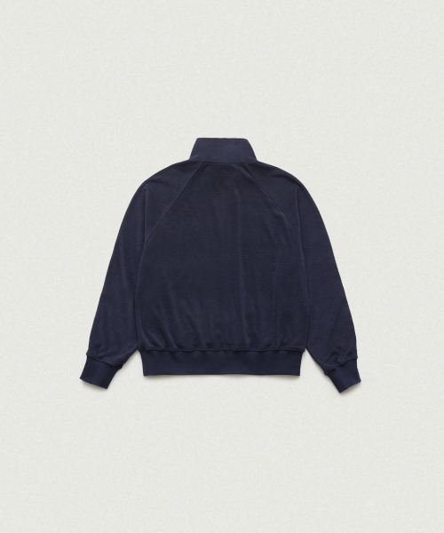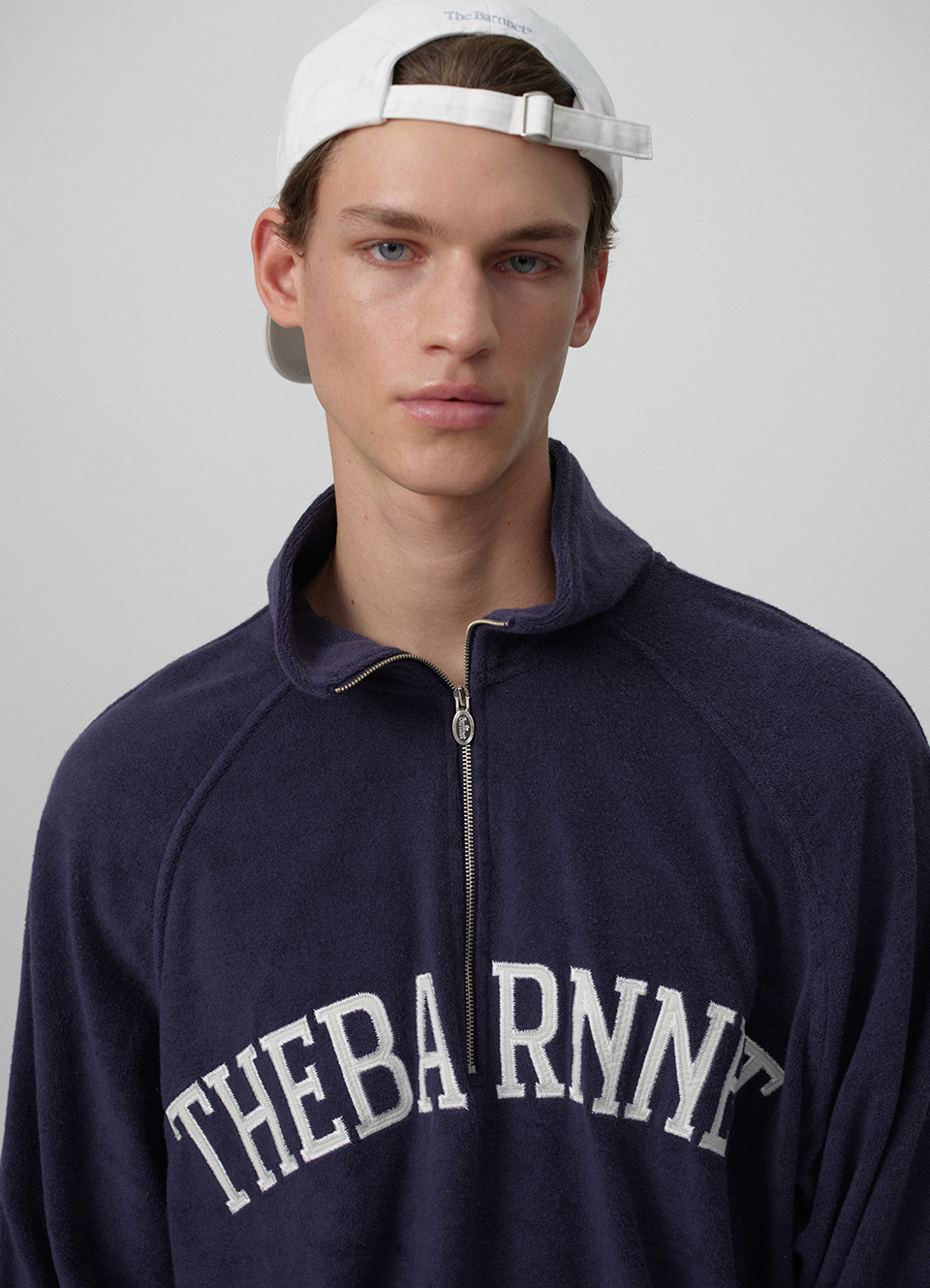클래식한 네이비 컬러와 부드러운 터치감의 테리 소재 패브릭