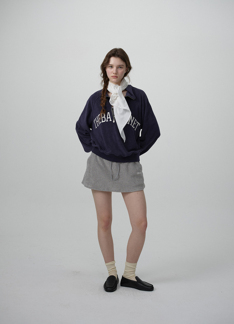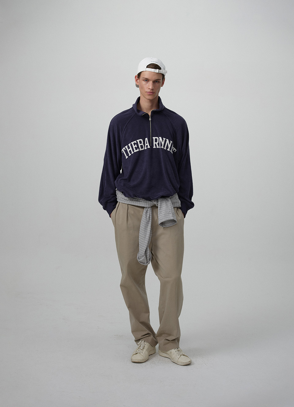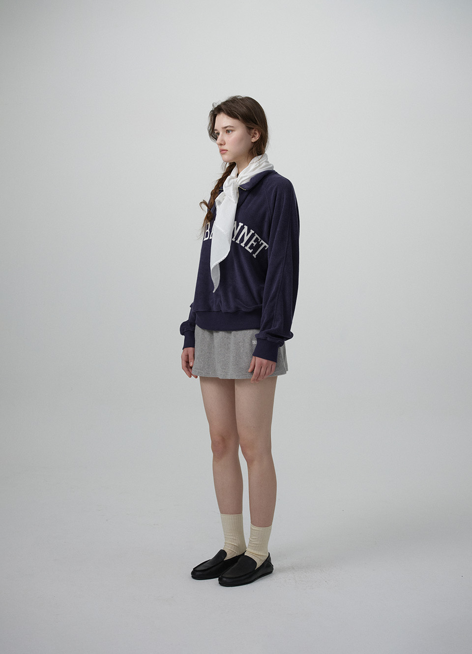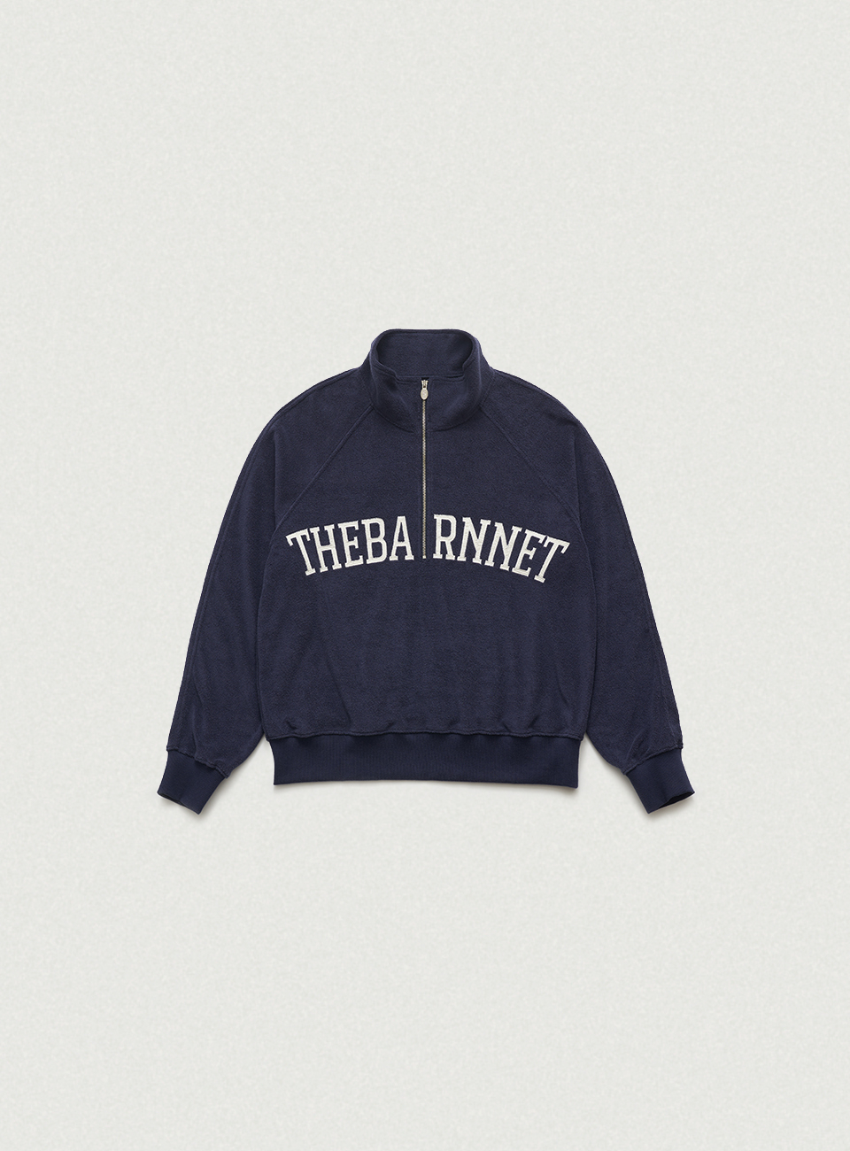 클래식한 네이비 컬러와 부드러운 터치감의 테리 소재 패브릭