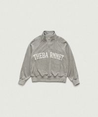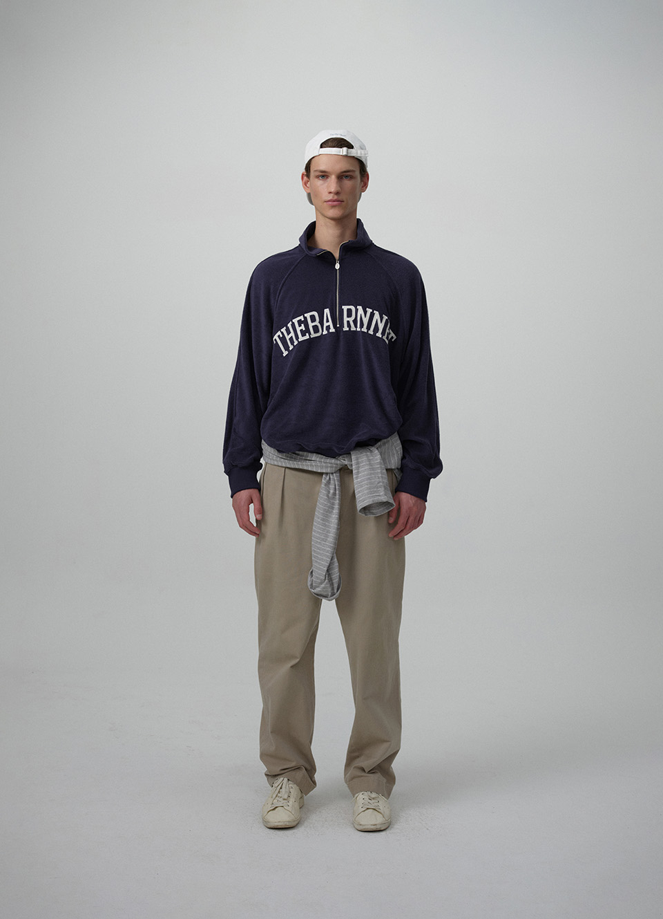 하이넥 디자인과 로고 각인 지퍼 디테일의 하프 집업 풀오버