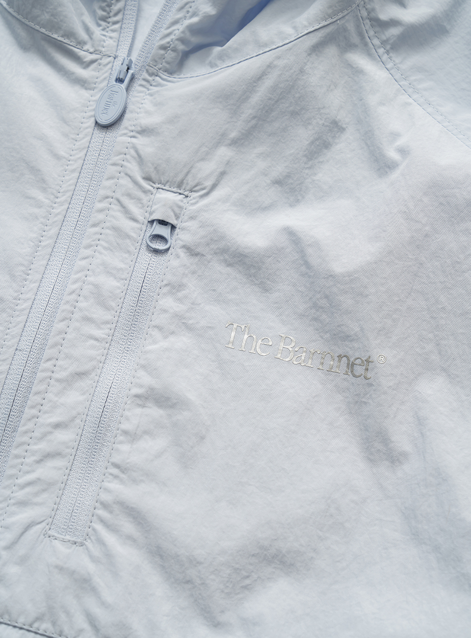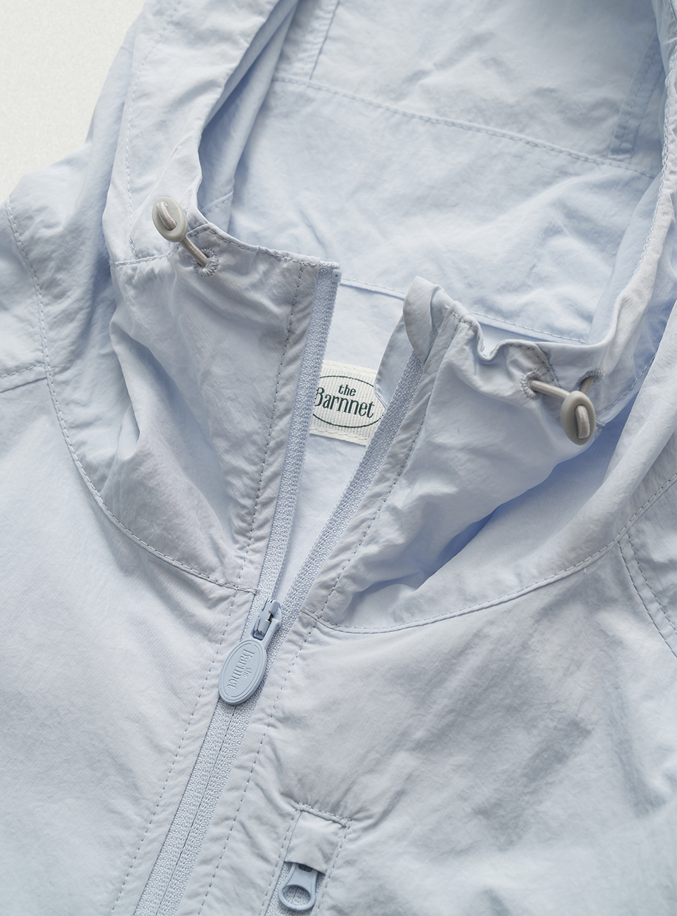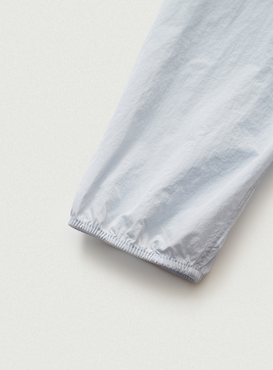 페일한 라이트 블루 컬러와 가볍고 유연한 텍스처의 나일론 패브릭