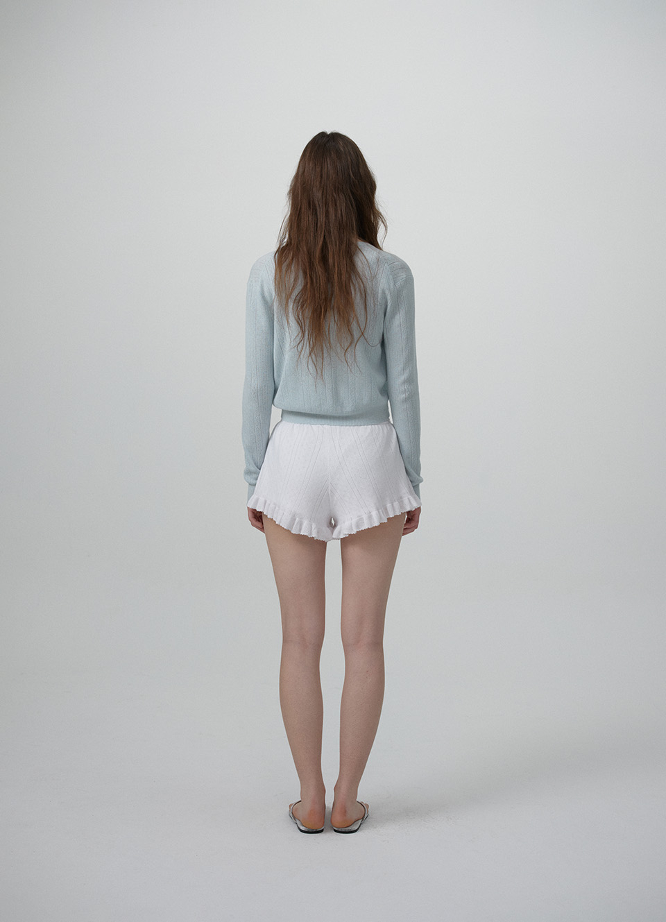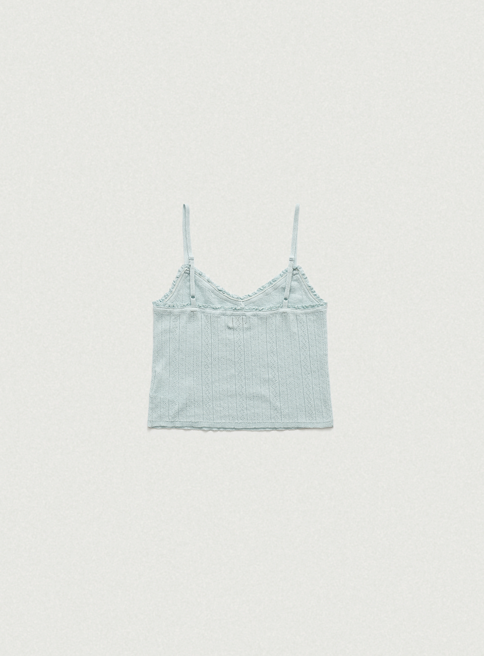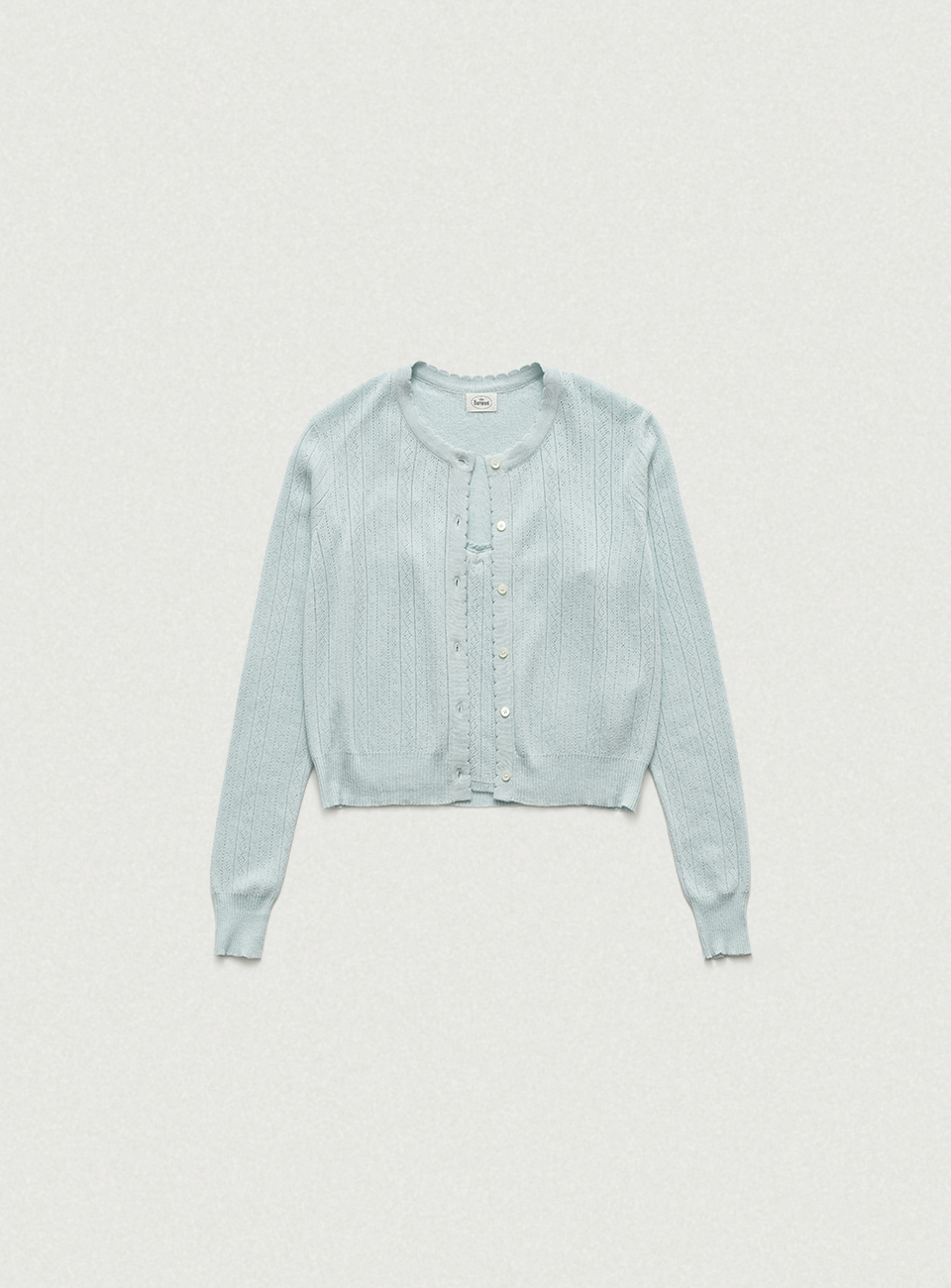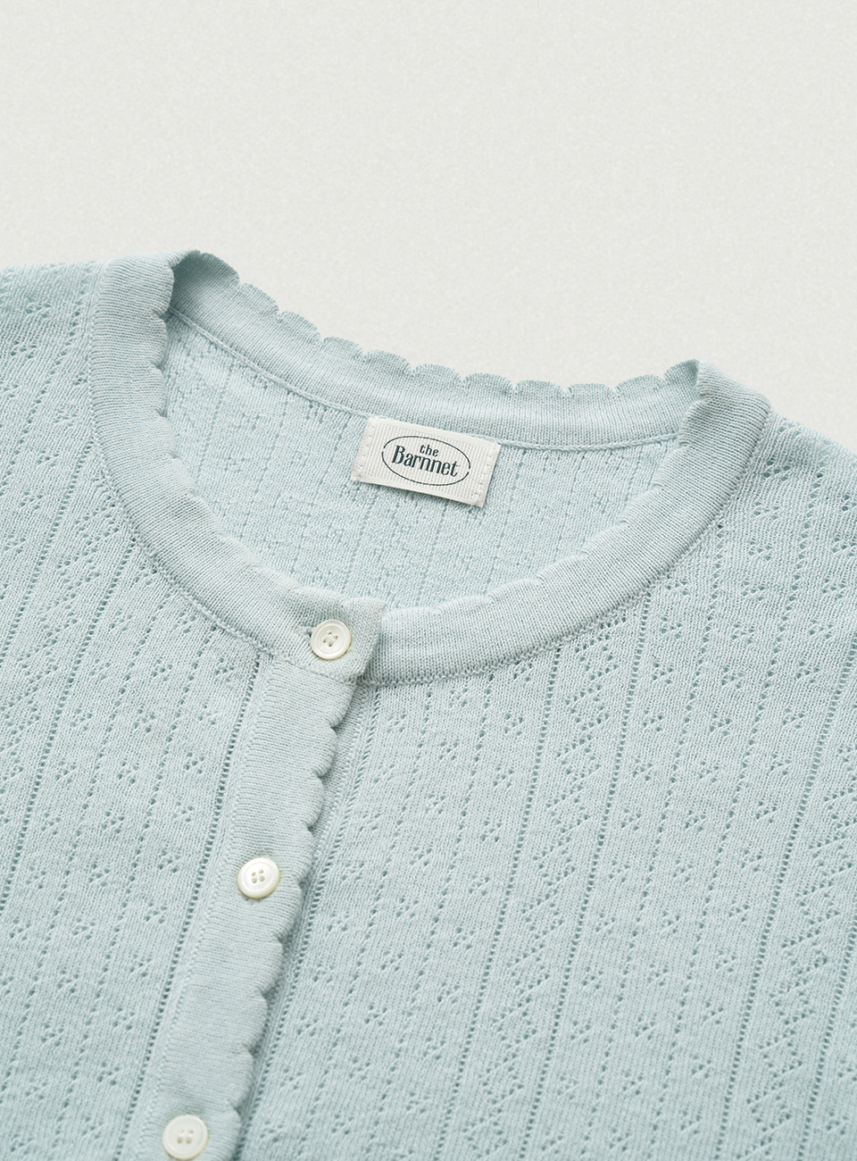 페일한 민트 컬러감과 부드러운 터치감이 돋보이는 포인텔 패턴의 니트 가디건과 슬리브리스 셋업