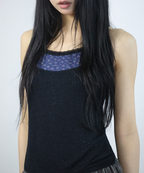 플라워 레이스 슬리브리스-블랙