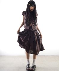 리본 포인트 슬리브리스 원피스-딥브라운