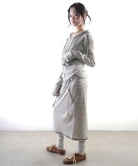슬림 롱 스커트-그레이 스트라이프