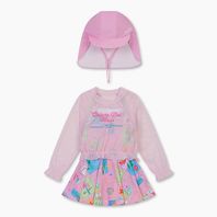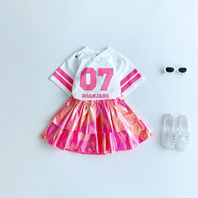 (메쉬)프루트 티셔츠(화이트) + 트로피칼 스커트(핑크) SET