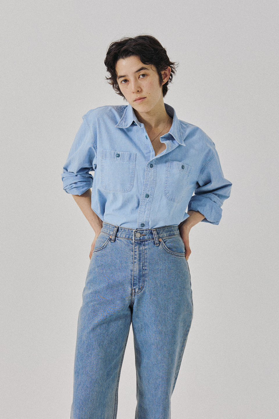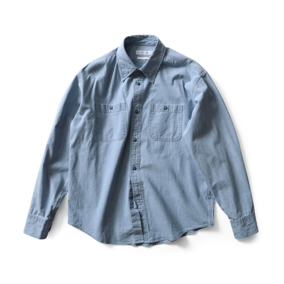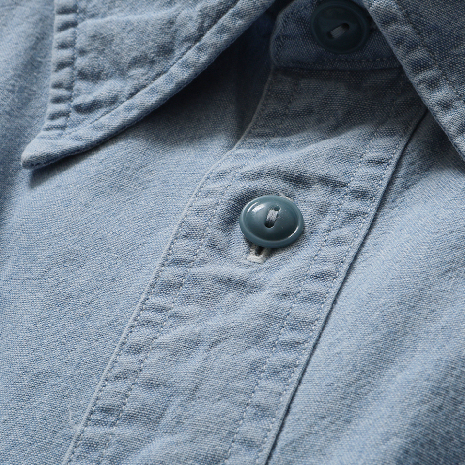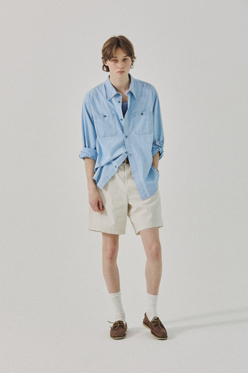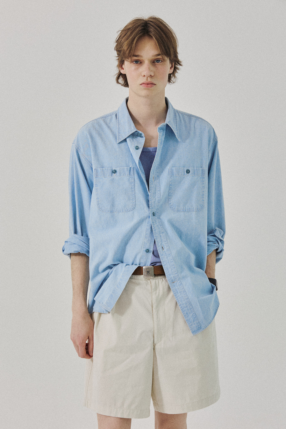 가볍고 통기성 좋은 샴브레이 원단에 데님 워싱을 더해, 한층 시원하면서도 자연스러운 블루 컬러감을 완성한 셔츠입니다.
