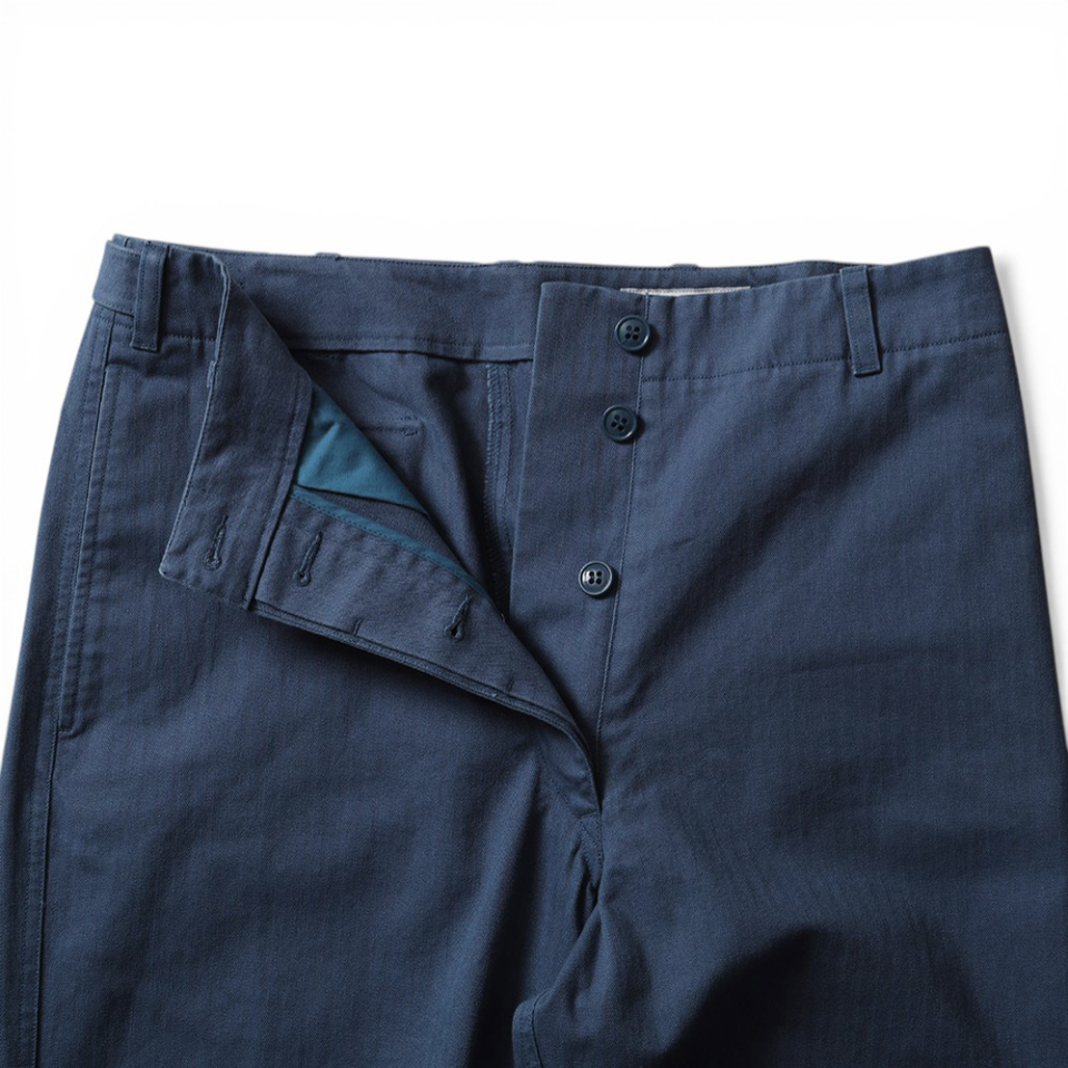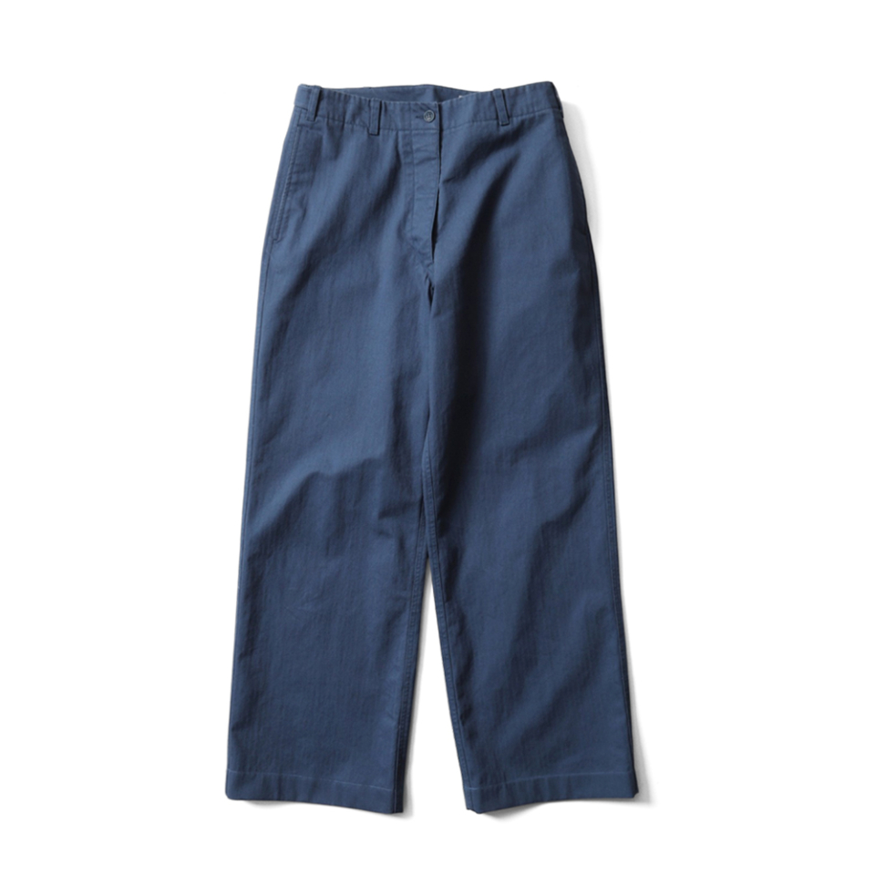 헤링본 특유의 고급스러운 텍스처와 워싱된 컬러감으로 빈티지한 무드가 돋보이는 코튼 팬츠입니다.