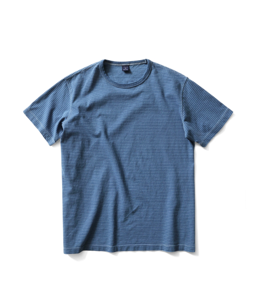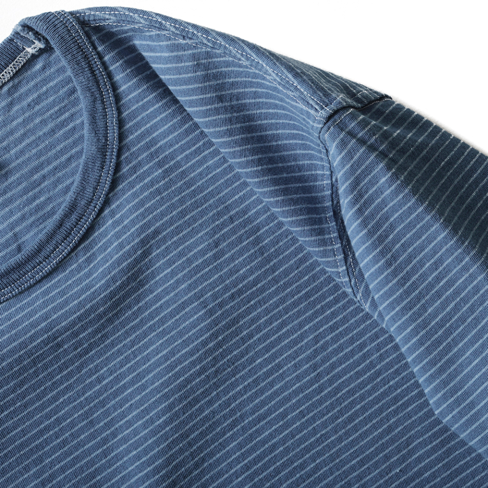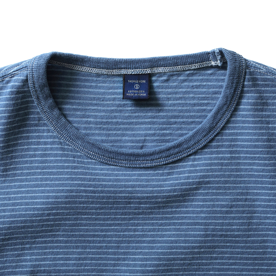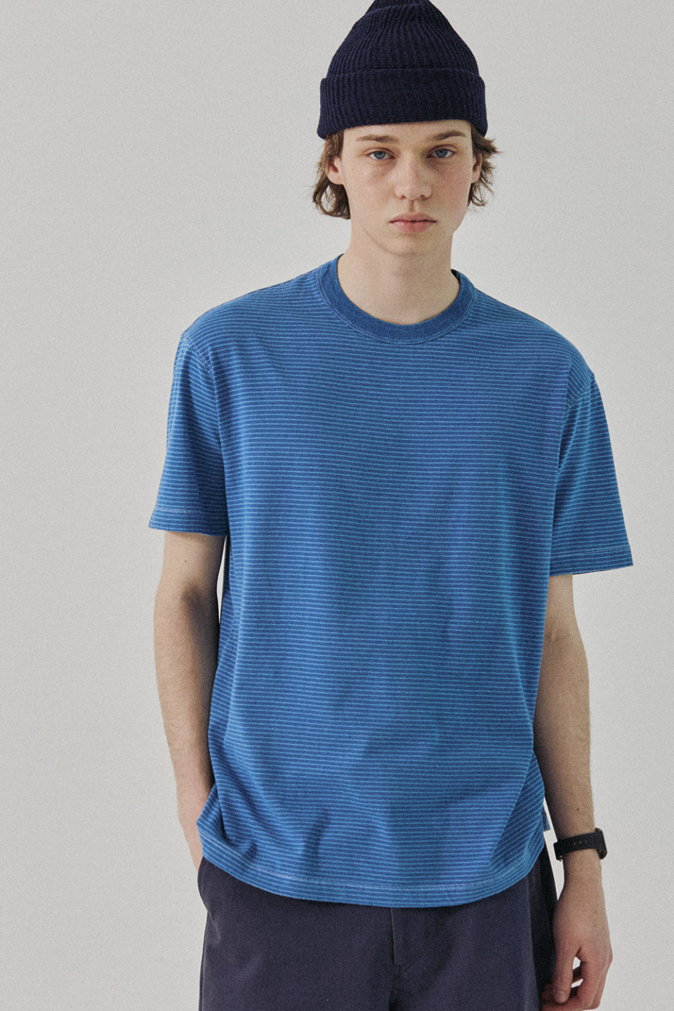 서로 다른 깊이의 인디고 톤을 조합한 빈티지한 무드의 스트라이프 티셔츠입니다.