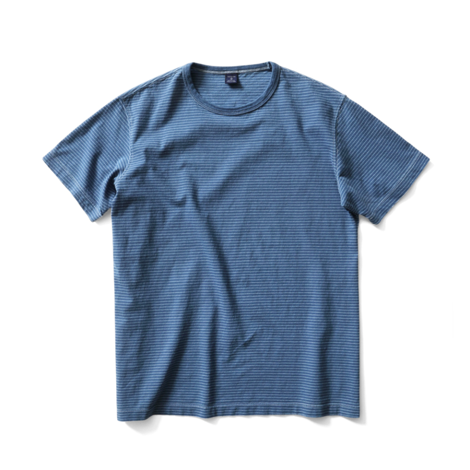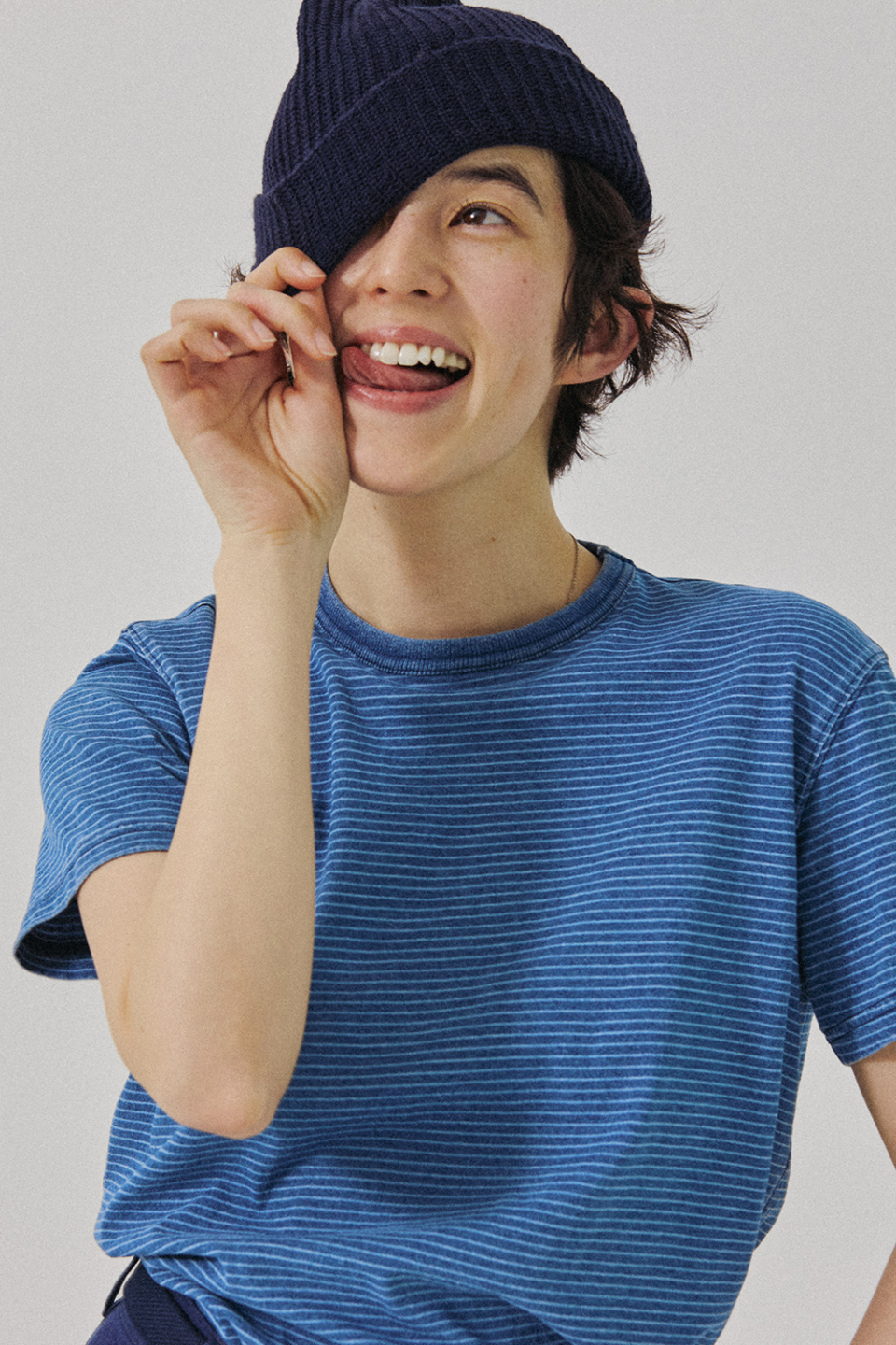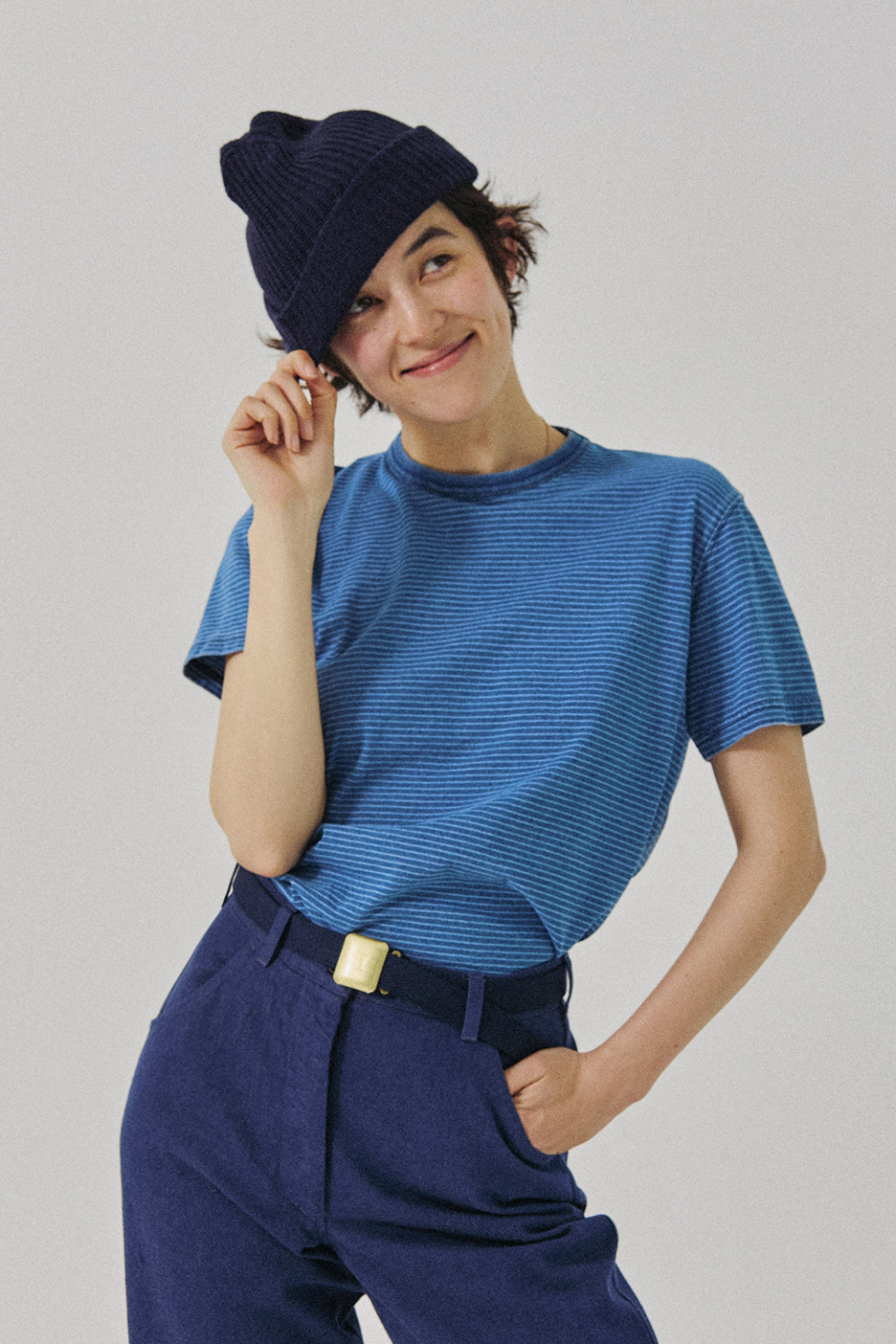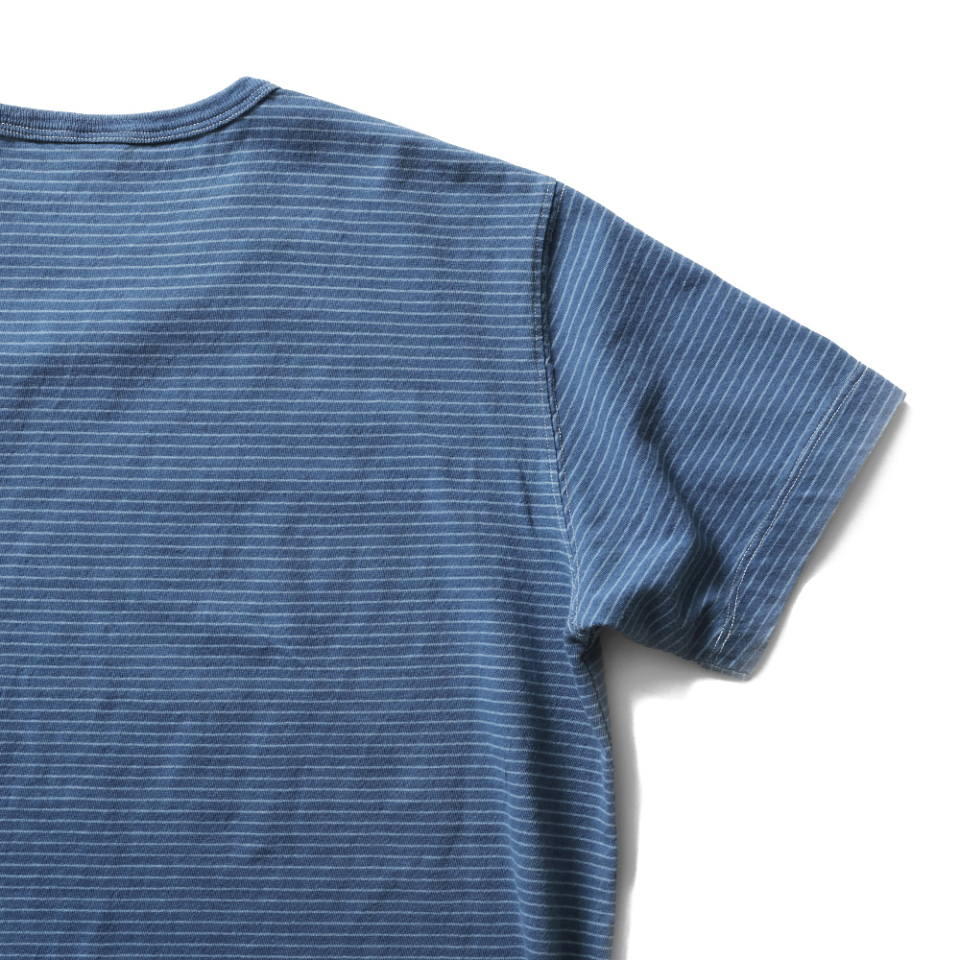 서로 다른 깊이의 인디고 톤을 조합한 빈티지한 무드의 스트라이프 티셔츠입니다.