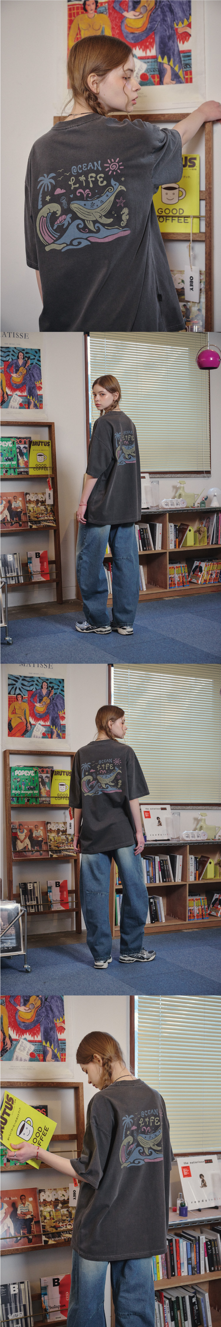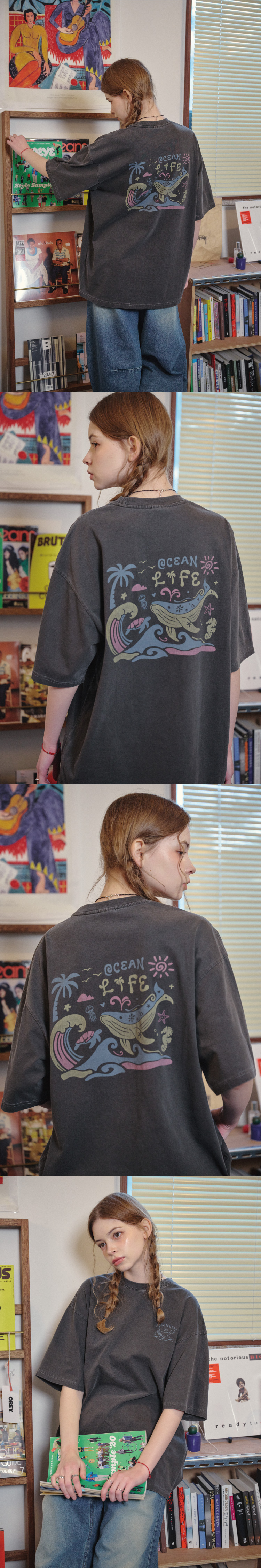 블루 웨이브 피그먼트 반팔티 스모크블랙