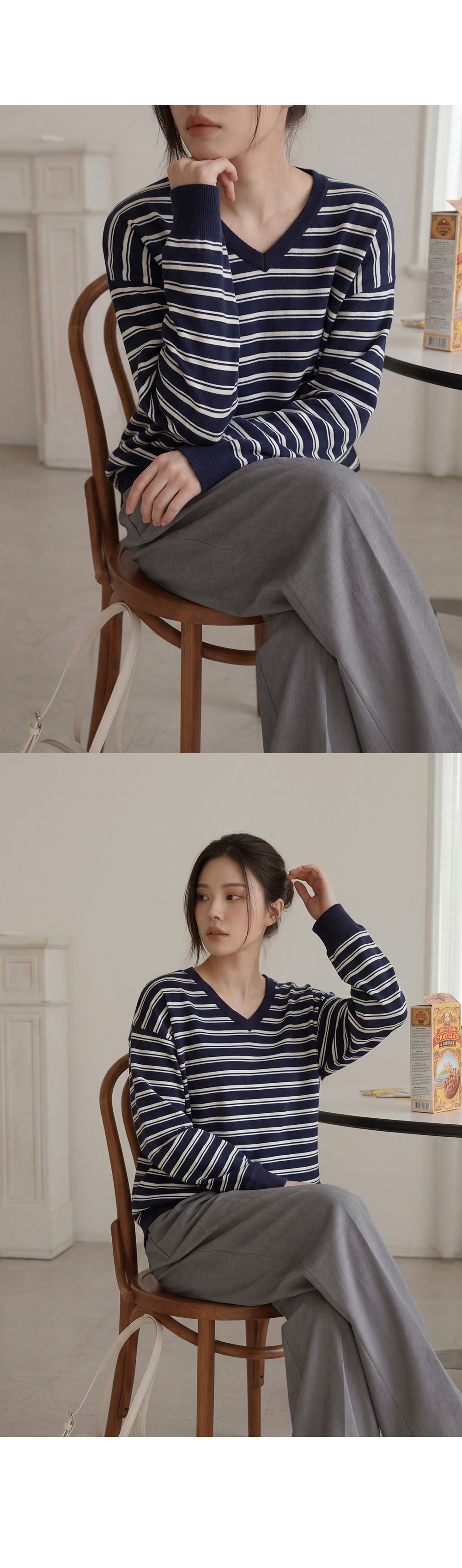 COLLAR STRIPE LONG SLEEVE_DARK GREY