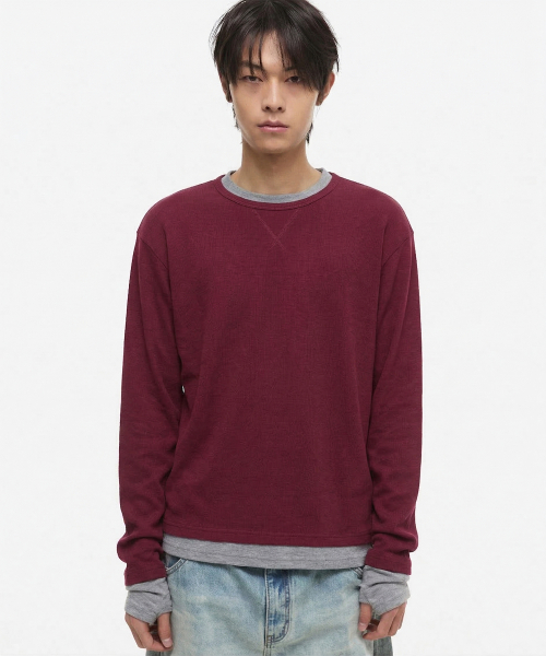 [온플릭xDNSR] 레이어드 보트넥 롱슬리브 버건디/그레이