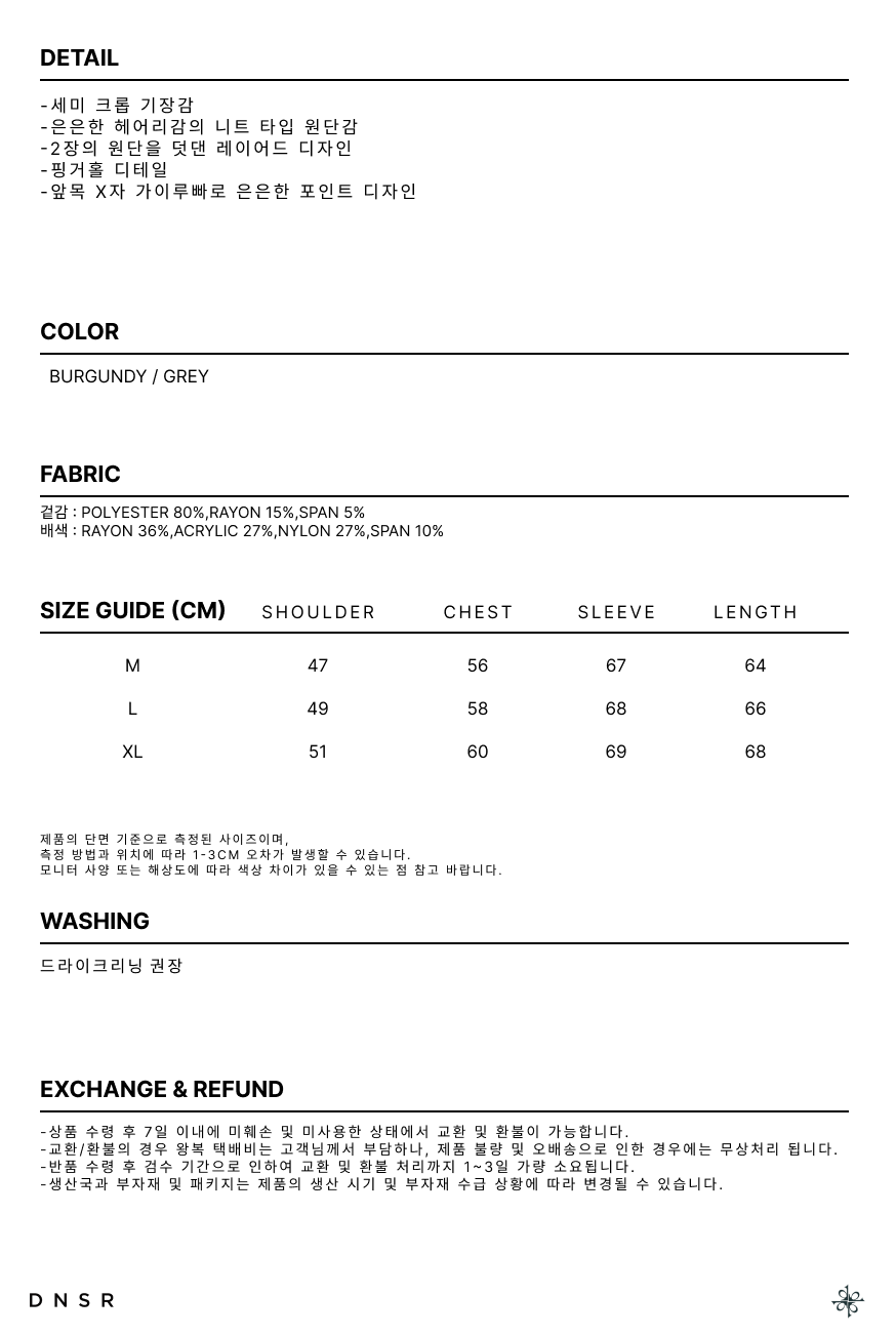 디앤에스알(DNSR)는 'Do New things, Something to realize'라는 슬로건을 바탕으로, 동시대에 흐름에 발 맞춰 항상 독창적이고 새로운 시도를 하고 있습니다. 디앤에스알의 DNA는 현대 복식을 기반으로 하는 오리지널리티의 견고한 테일러링을 고수하며 시대의 흐름을 읽고 변화하는 무드와 스타일링을 제안하는 스트릿 캐주얼 웨어입니다.