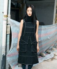 레더 폴드 에이프런 원피스