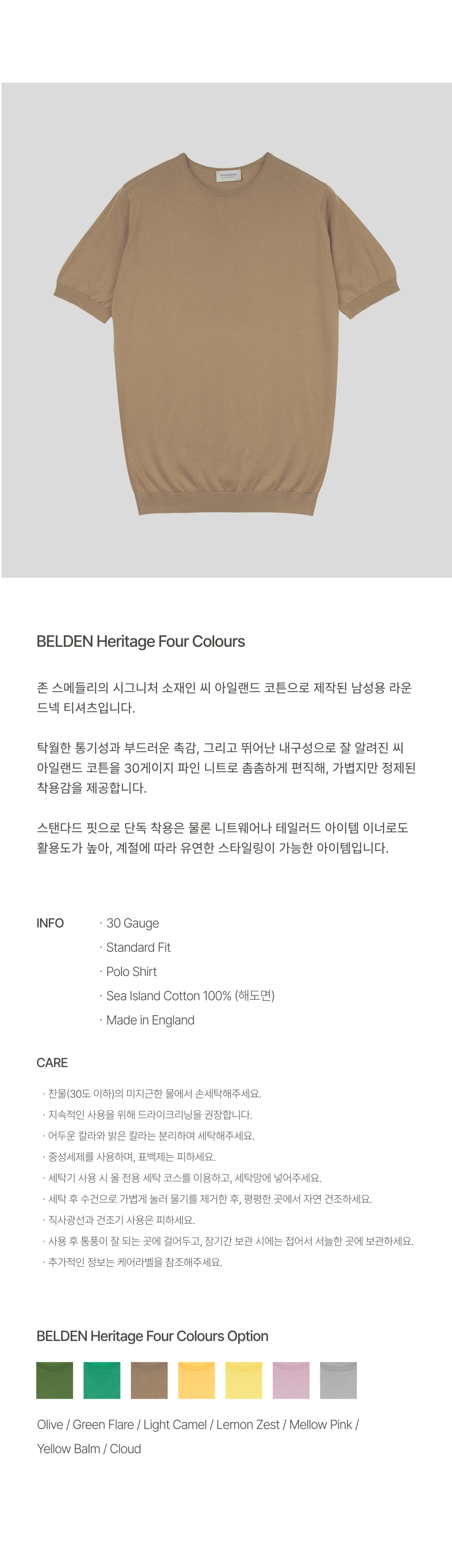 존 스메들리(JOHN SMEDLEY)는 250여 년의 역사를 가진 명품 니트 브랜드로, 전 세계에서 가장 얇은 니트를 선보이며 왕실 인증서를 보유하고 있습니다.