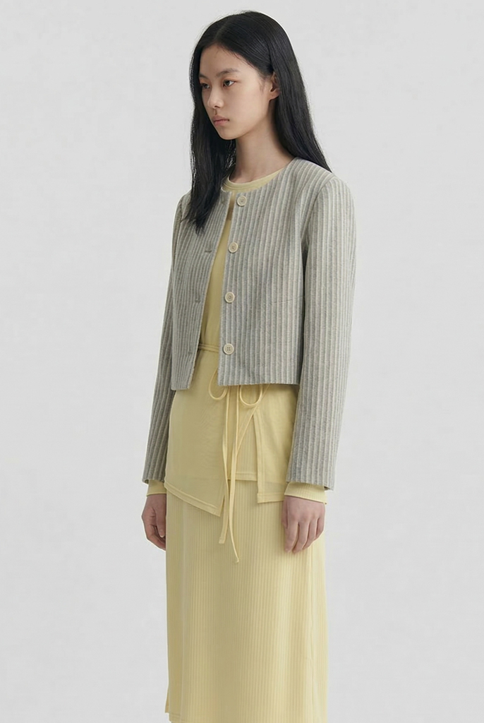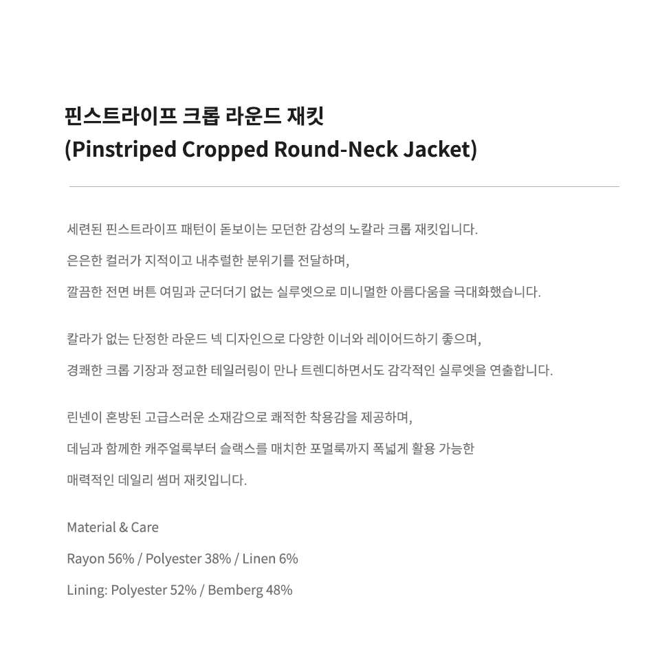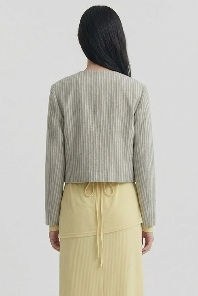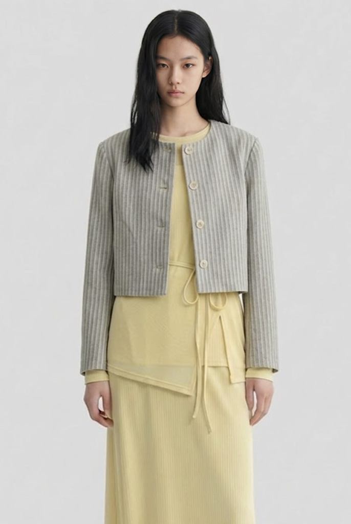 핀스트라이프 크롭 라운드 재킷 [베이지/브라운]