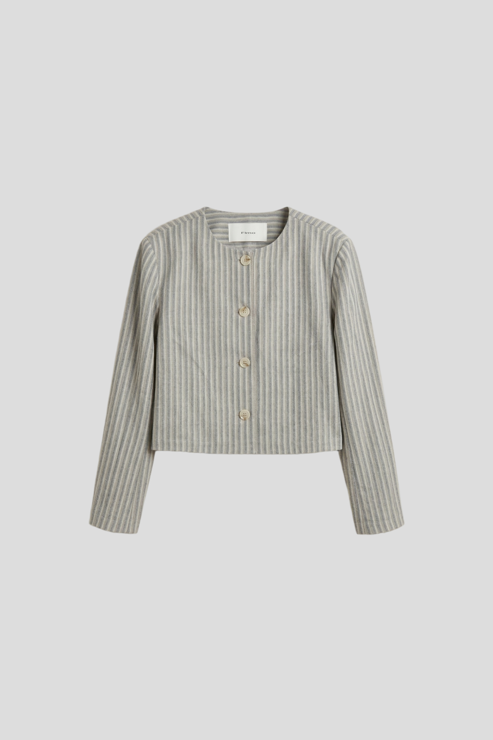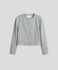 핀스트라이프 크롭 라운드 재킷 [베이지/블루]