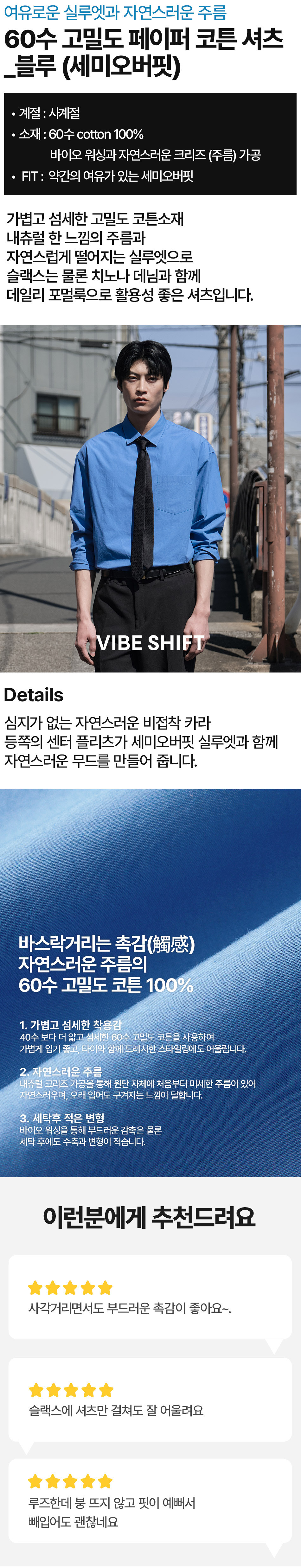 DIEMS 고밀도 면100 바이오 워싱 셔츠_블루 (세미 오버핏)_LDSXA63OSL