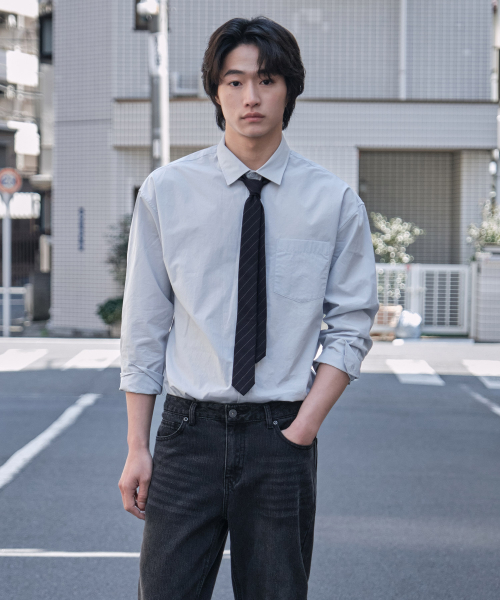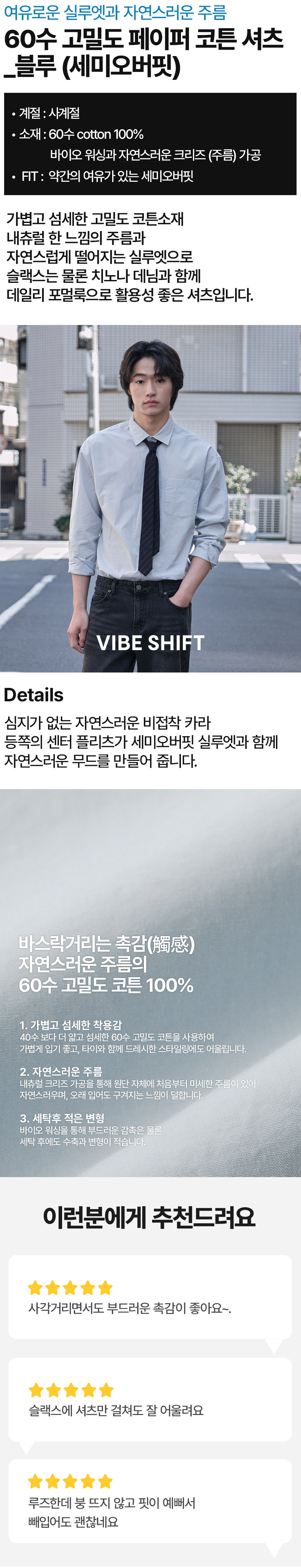 DIEMS 고밀도 면100 바이오 워싱 셔츠_블루 (세미 오버핏)_LDSXA62OSL