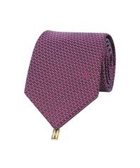실크혼방 지오메트릭 체크 패턴 올오버 넥타이 바이올렛