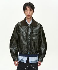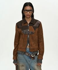 HARVEY LEATHER PATCHWORK JACKET awa744w(BROWN)