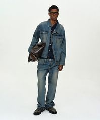 UNISEX ASYMMETRIC LAYERED DENIM JACKET awa747u(BLUE)