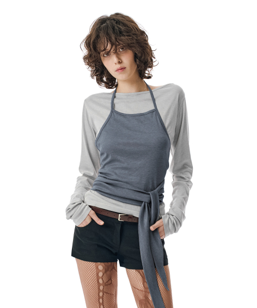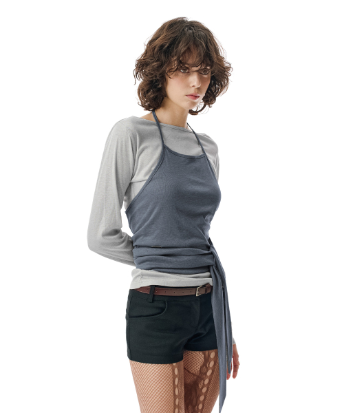 W.(SET)Tie Detail Layered Set Top [ASHBLUE]_SEWTS025ASHBLUE