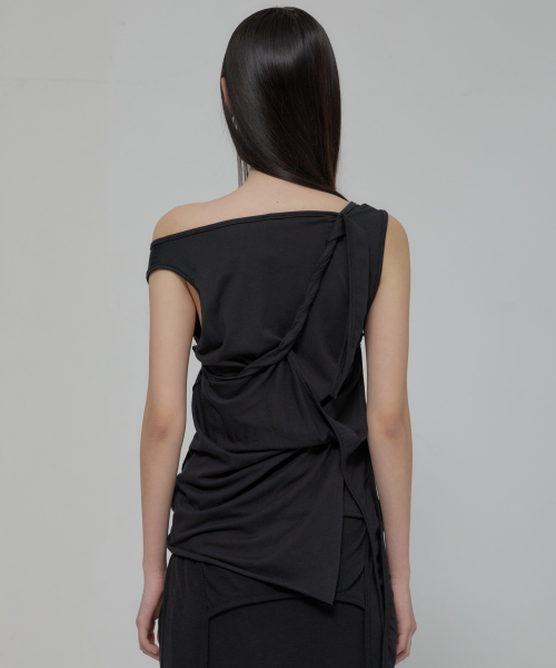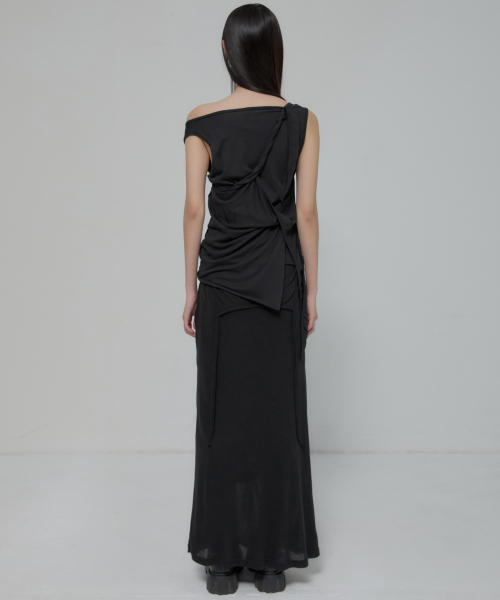 Asymmetrical Draped Hoodie (FL-187_Black)