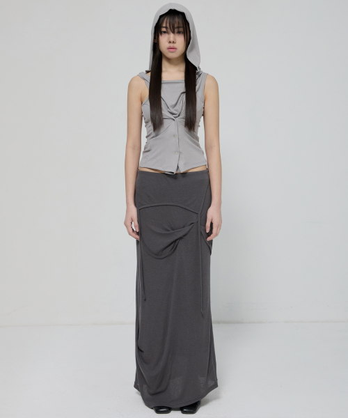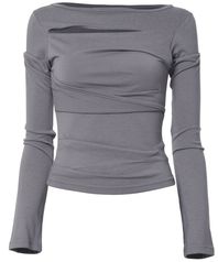 Asymmetrical Draped Long Sleeve (FL-195_Gray)