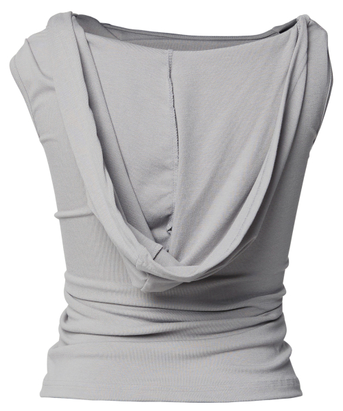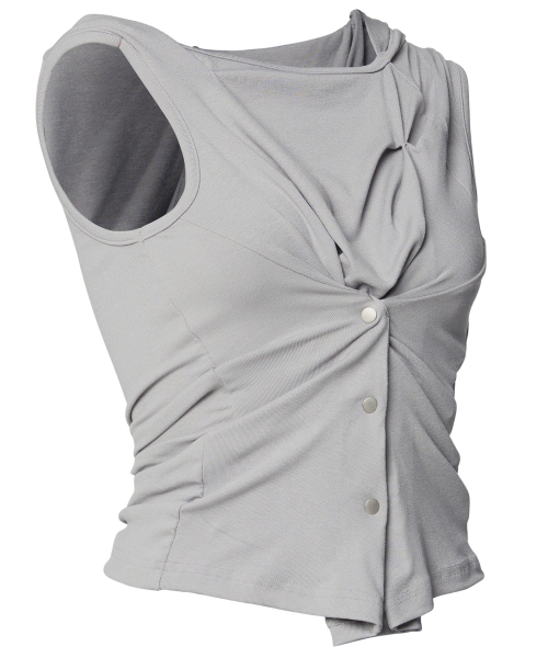 Asymmetrical Draped Mock Neck T-Shirt (FL-126_Gray)