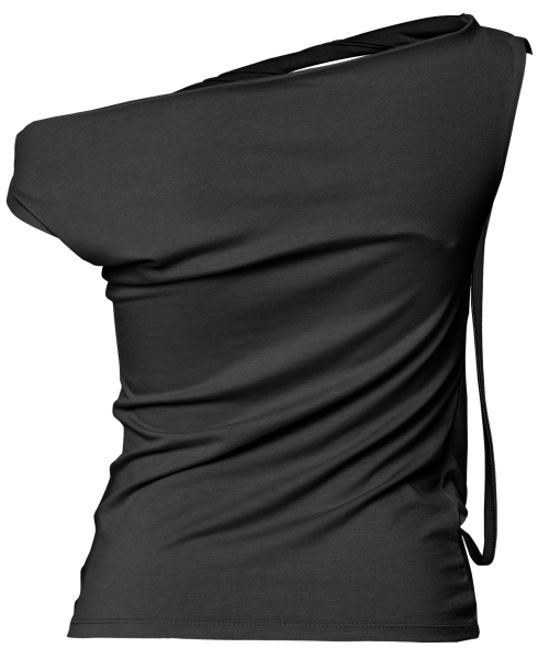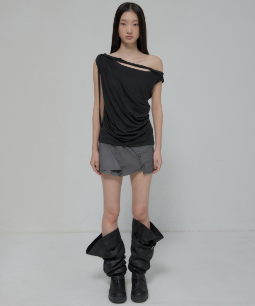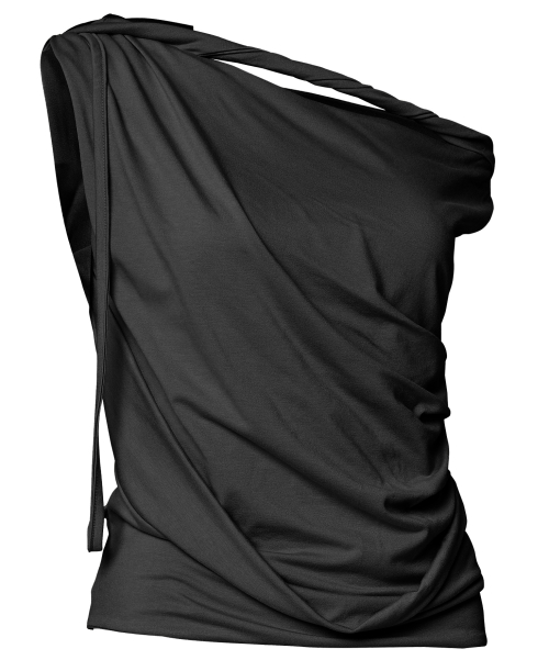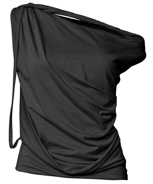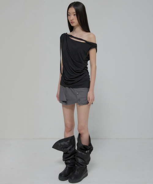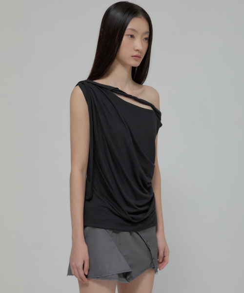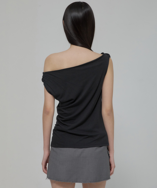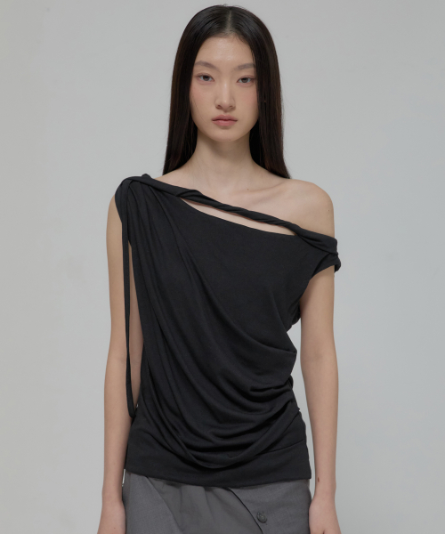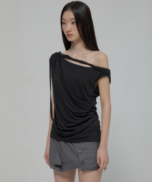 Braided Drape One-Shoulder Top (FL-140_Black)
